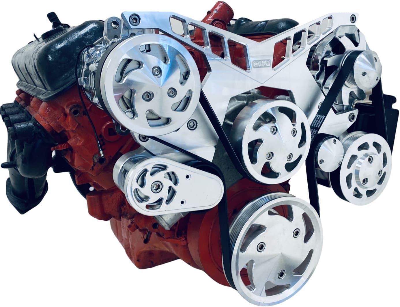 BBC Serpentine Pulley Conversion Kit ALT PS AC 396 427 454 All Inclusuve SWP (Machined Finish)