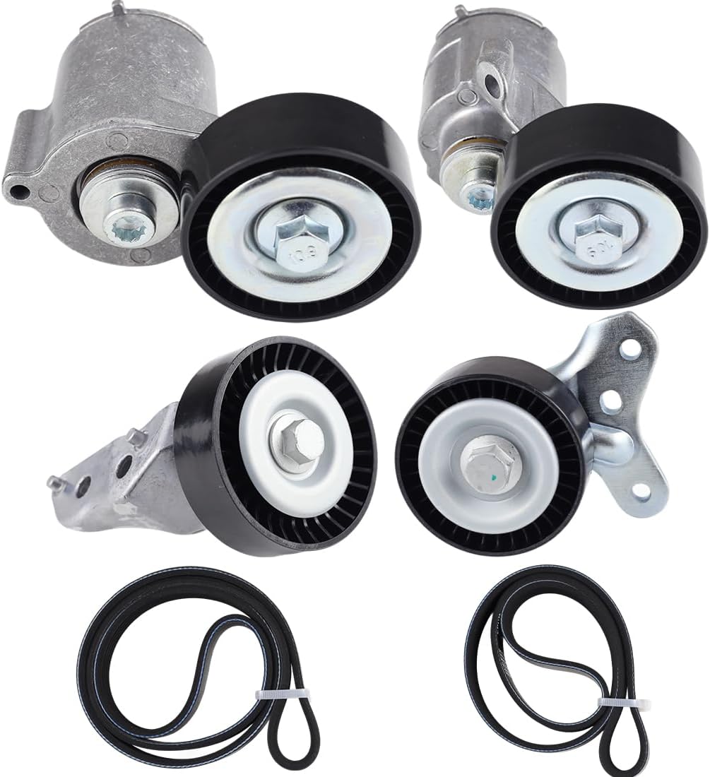Drive Belt Tensioner & Idler Pulley Kit w/Serpentine Belts Compatible with Maserati Ghibli, Quattroporte, Levante 3.0L V6 Twin Turbo | Replace 278950, 278940, 286570, 243857