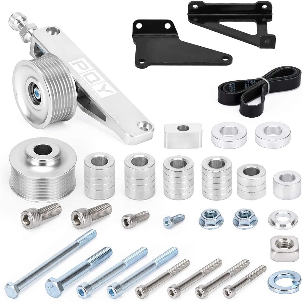Adjustable EP3 Pulley Kit A/C & P/S Eliminator Kit With Belt Compatible with Honda 8th 9th Civic All K20 and K24 engines