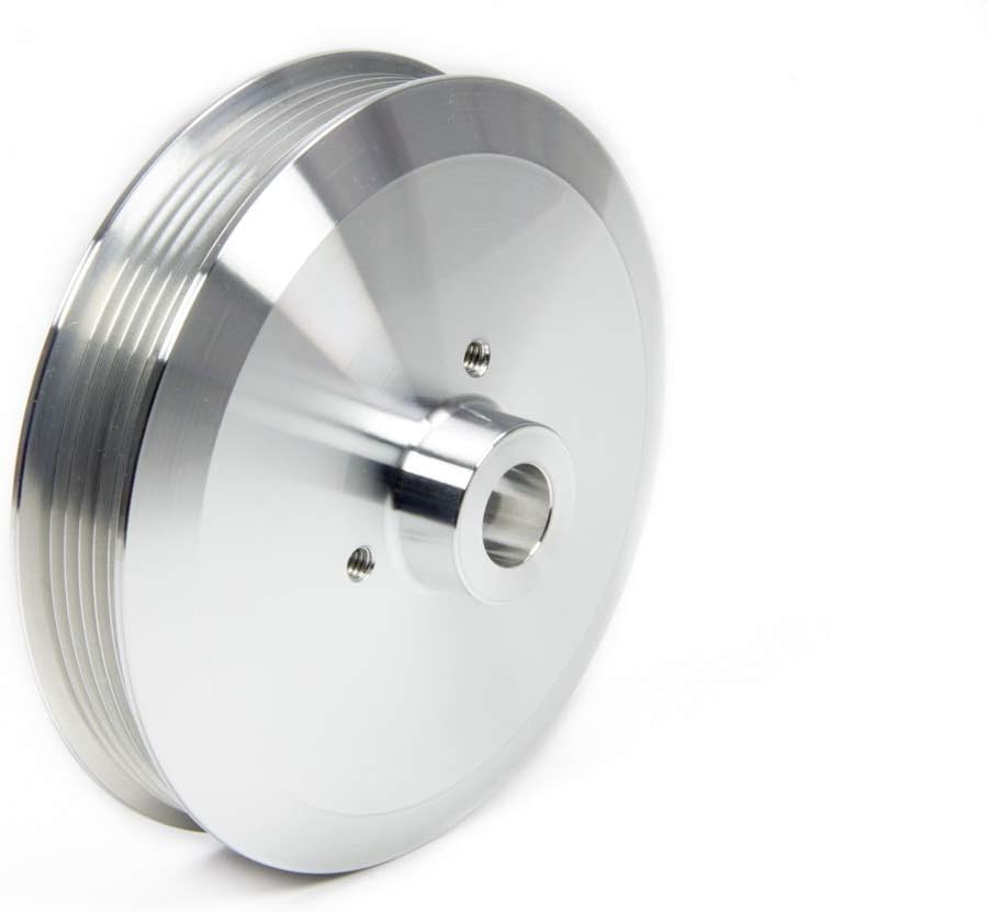 March Performance Power Steering Pump Pulley, Serpentine, 6-Rib, 3/4 in Press-On, 6 in Diameter, Aluminum, Clear Powder Coat, Long Water Pump, GM Pumps, Each