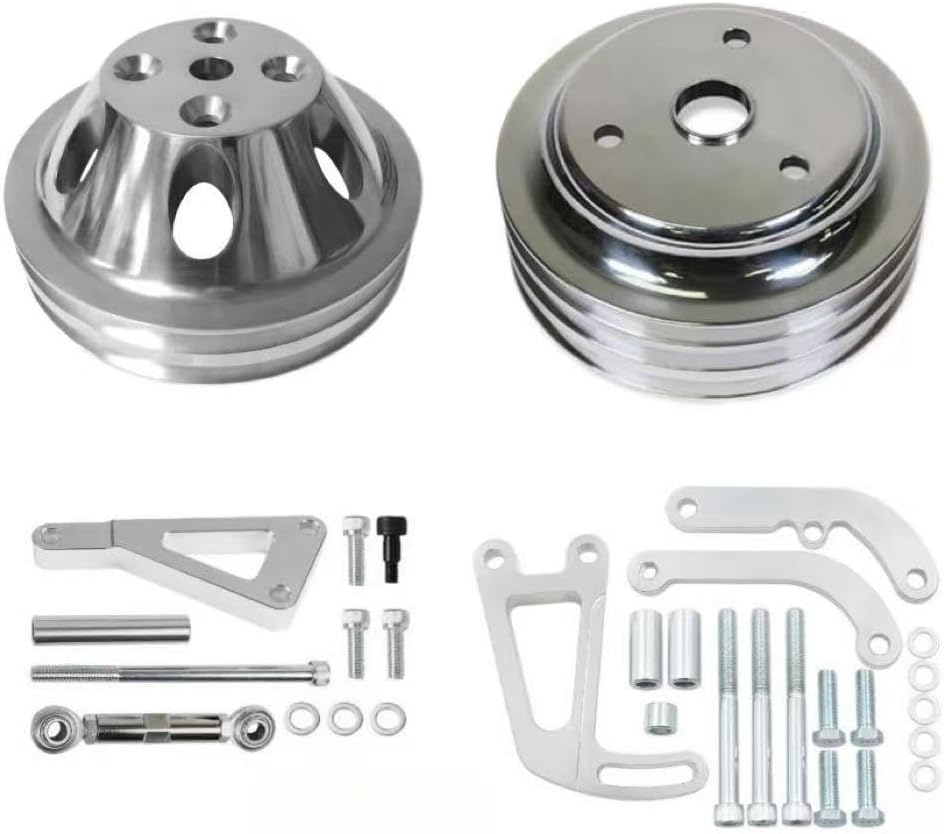 Chrome Polished Aluminum LWP Power Steering Pump Bracket Alternator Bracket and 3 Grooves Crankshaft 2 Grooves Water Pump Pulley Kit Compatible with SBC Chevy 350 400