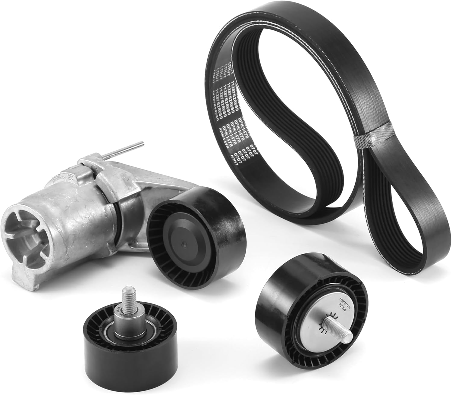 Drive Belt Tensioner Idler Pulley Kit 11288604266 + 11288604267 + 11287628659 + 11287615130 Compatible with BMW 335i 535i X3 X4 X5 X6