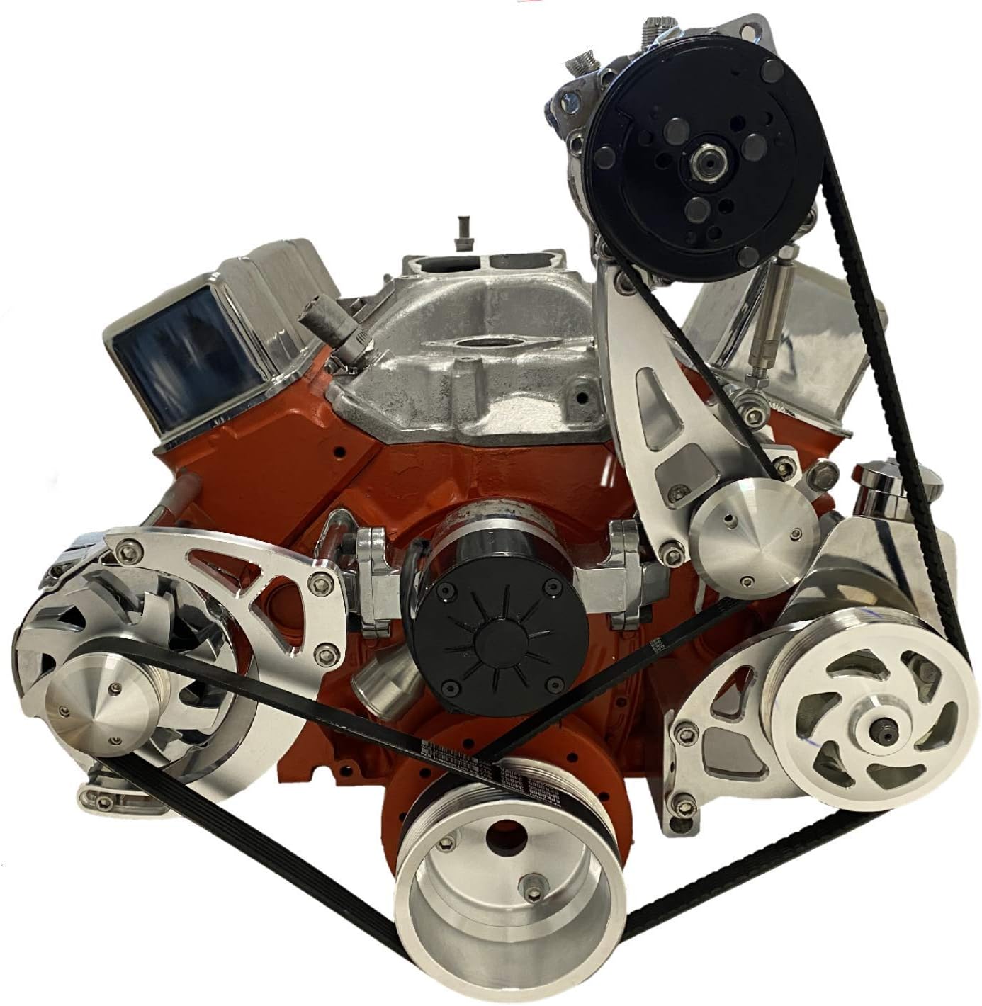 Small Block Chevy Serpentine Pulley Conversion Kit AC ALT PS Electric SBC EWP 1