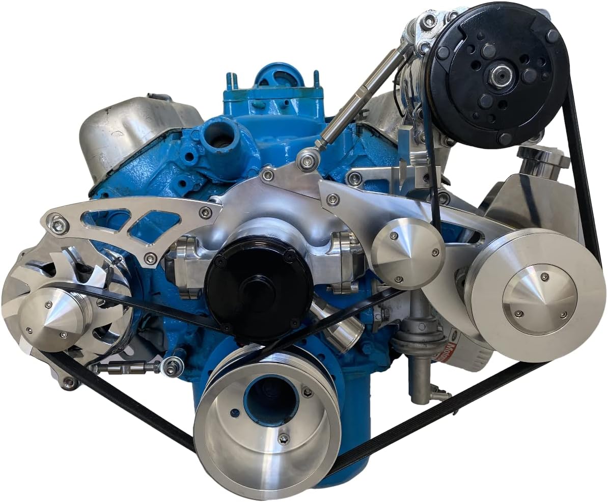 Compatible with Ford 351W Serpentine Pulley Conversion Kit A/C ALT & PS Ford Electric WP 2 - Electric Water Pump. 4 Bolt damper 1969+