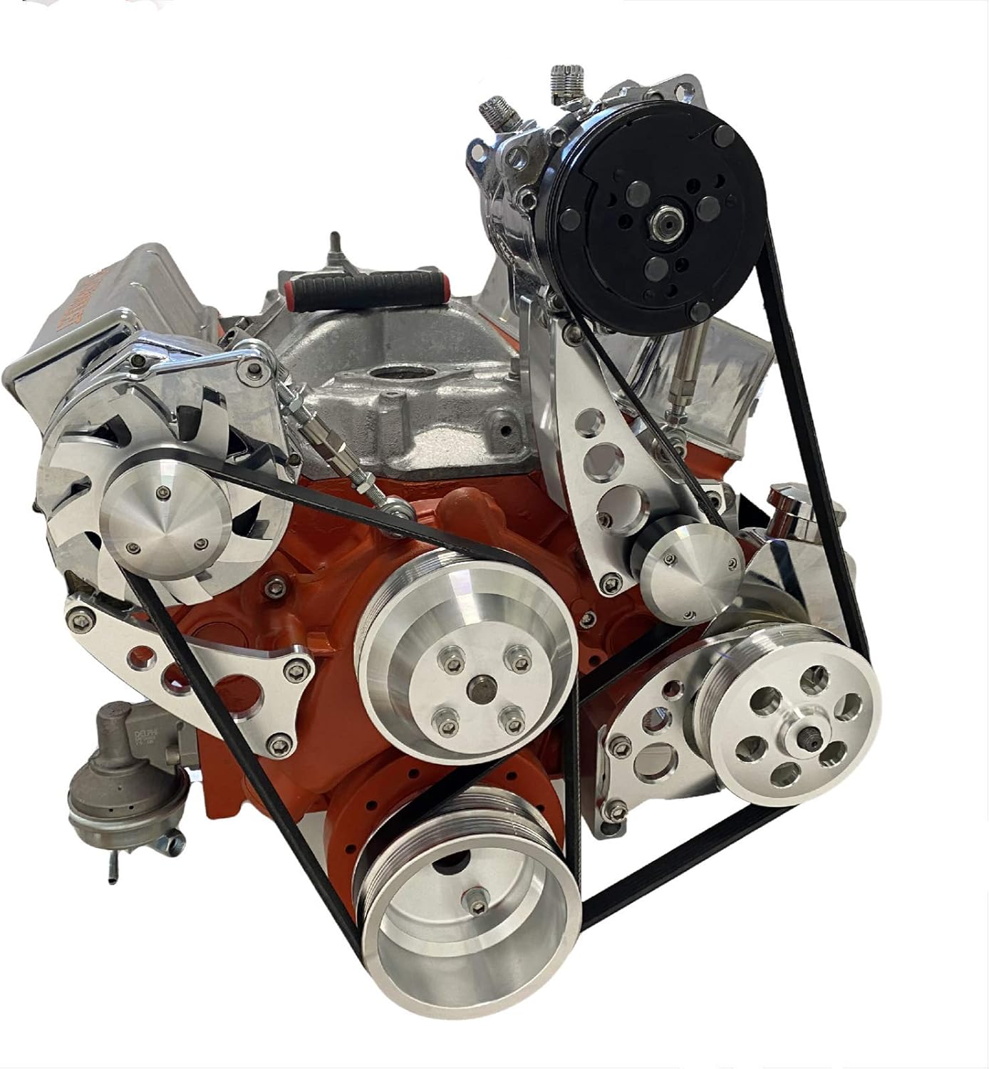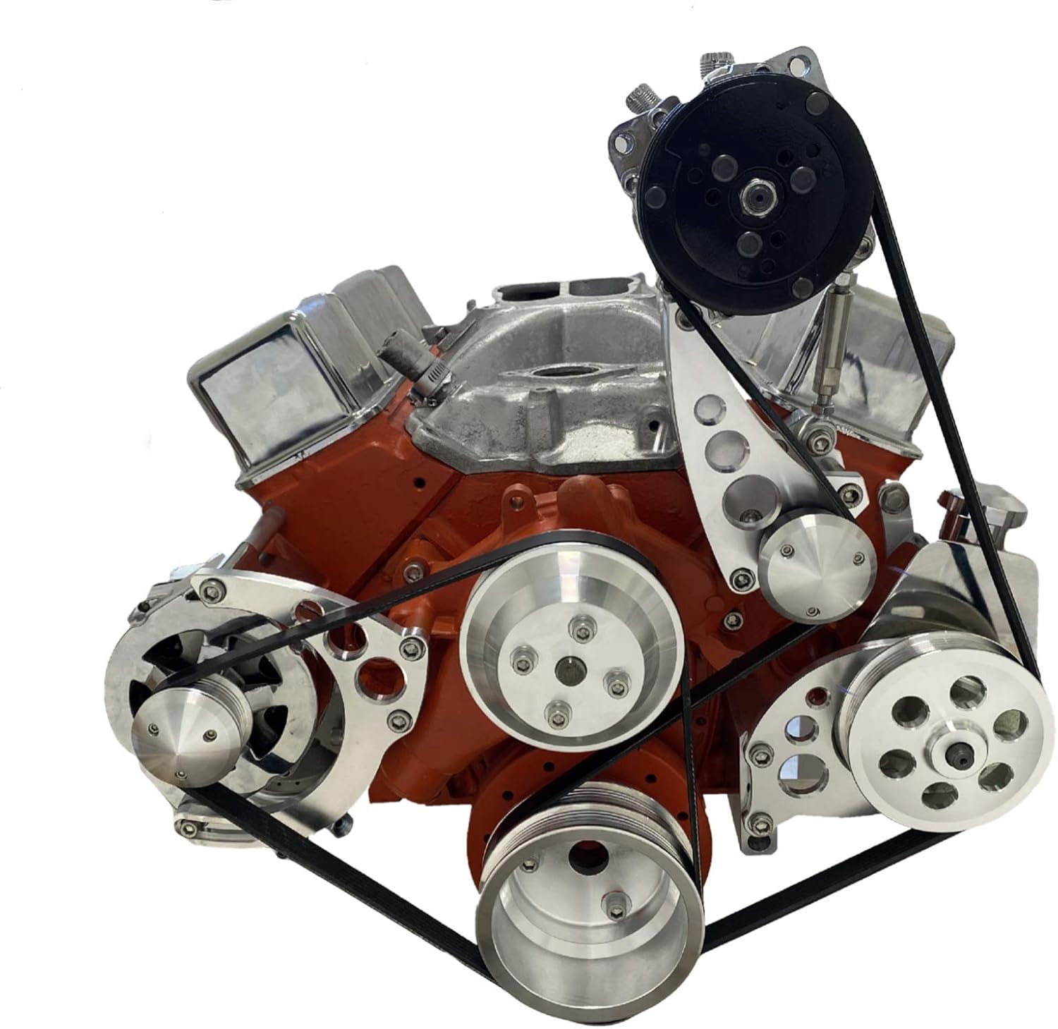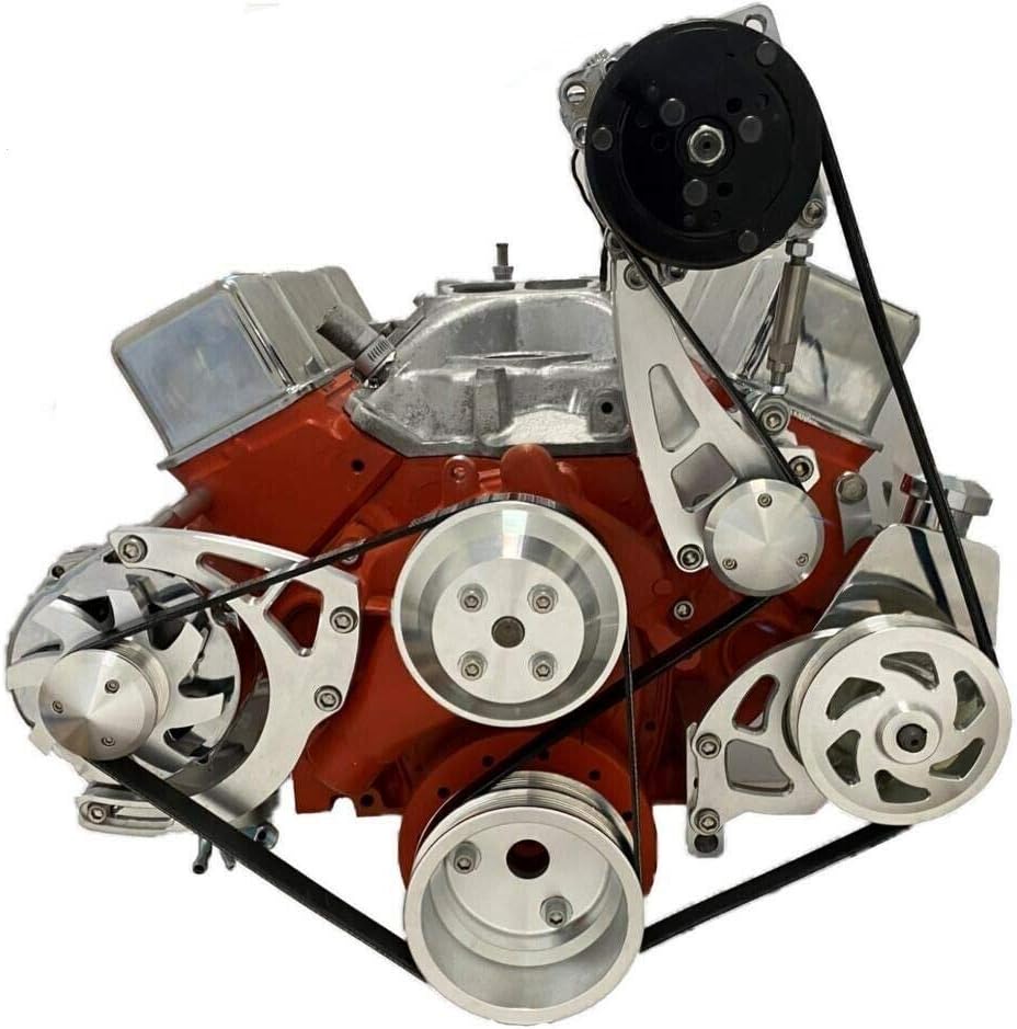 Small Block Chevy Serpentine Pulley Conversion Kit A/C ALT PS Mid Mount SBC LWP 6