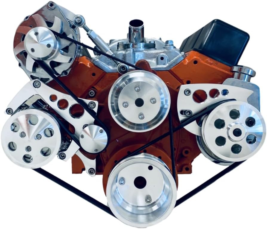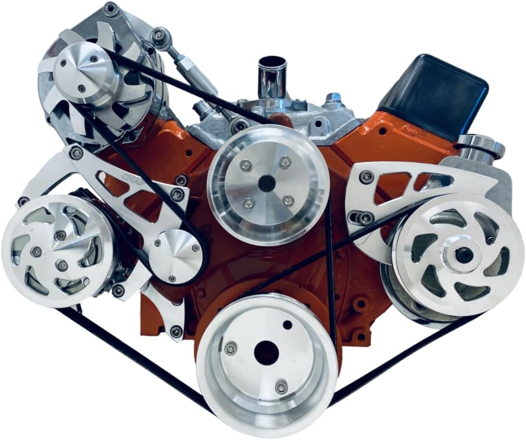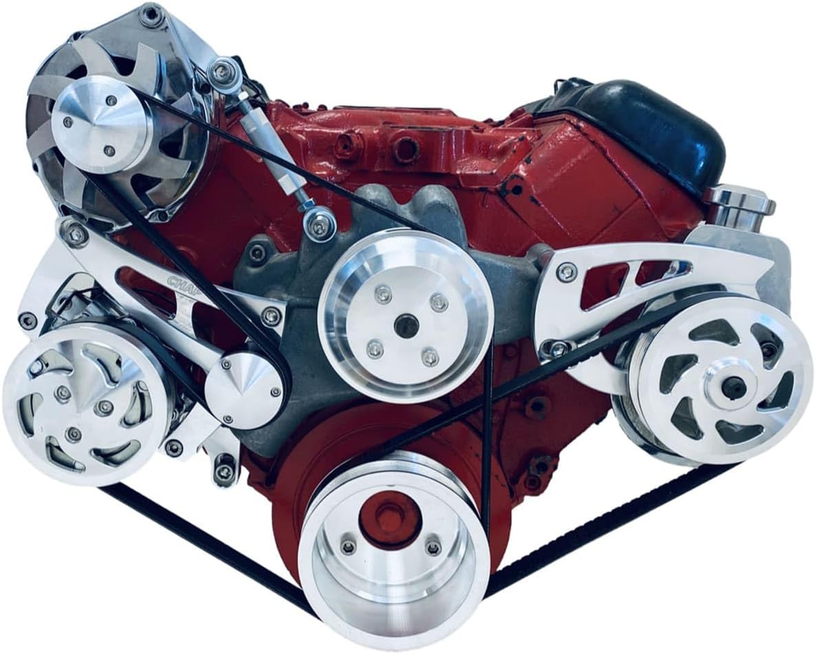 Small Block Chevy Serpentine Pulley Conversion Kit ALT PS AC Long WP SBC LWP A/C