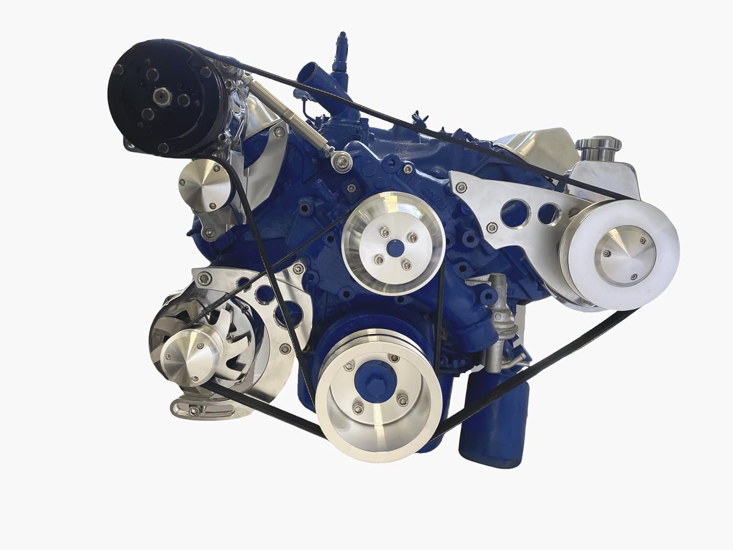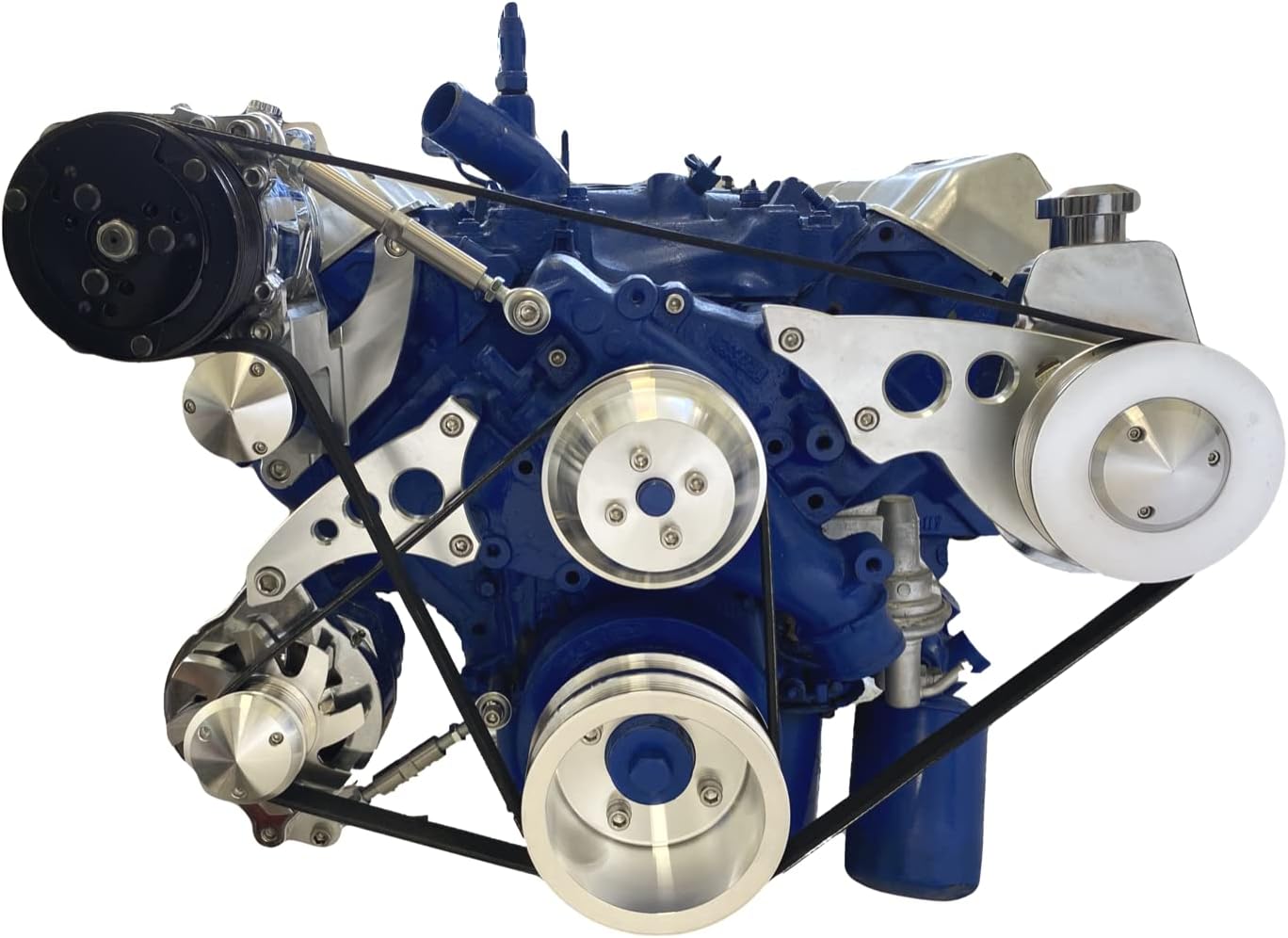 Compatible with Ford 351W Serpentine Pulley Conversion Kit A/C PS ALT WINDSOR 1 - Driver Side Lower Radiator Hose. 4 Bolt damper 1969+