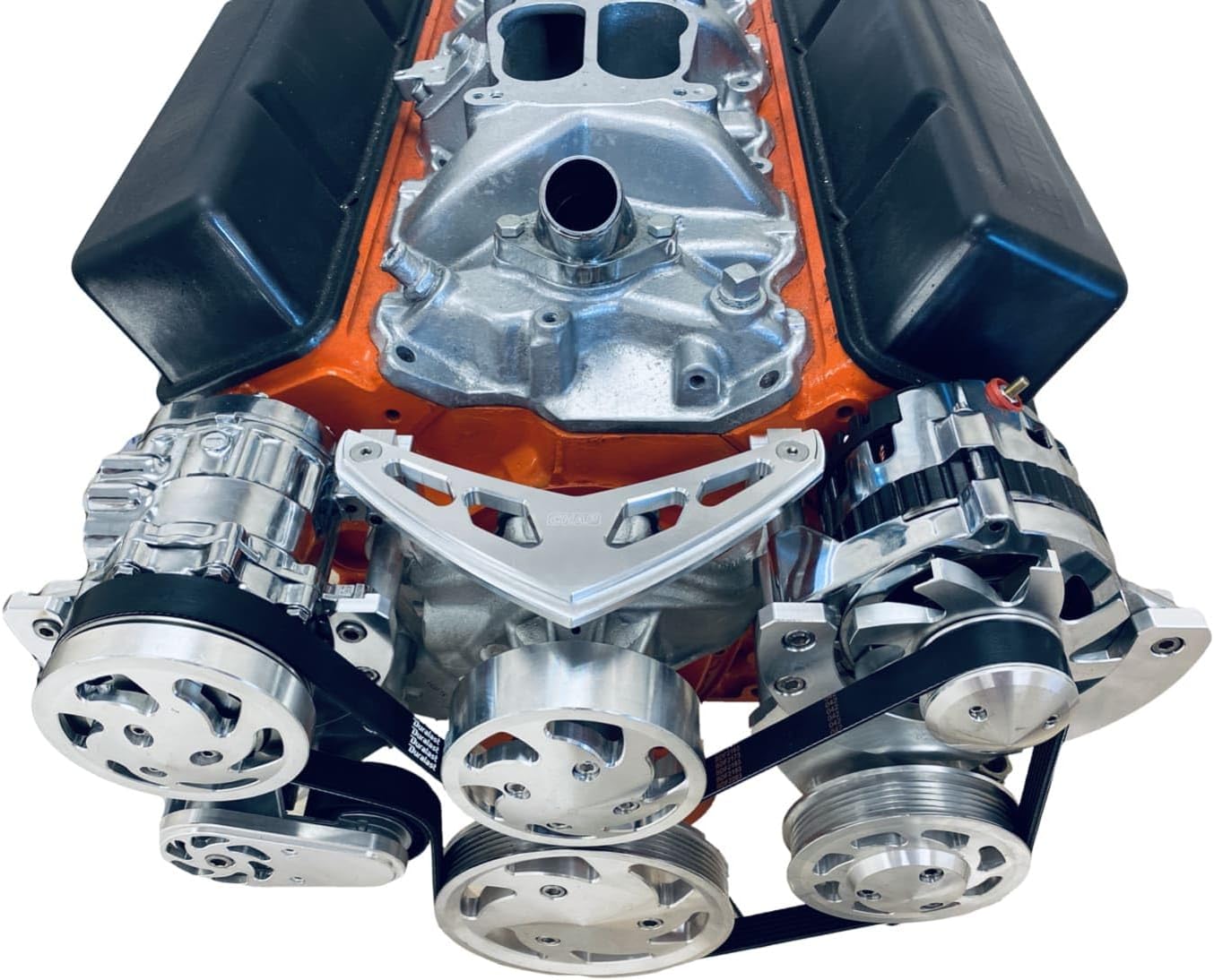 BBC Serpentine Pulley Conversion Kit ALT PS AC 396 427 454 All Inclusuve (Clear Powder Coat)