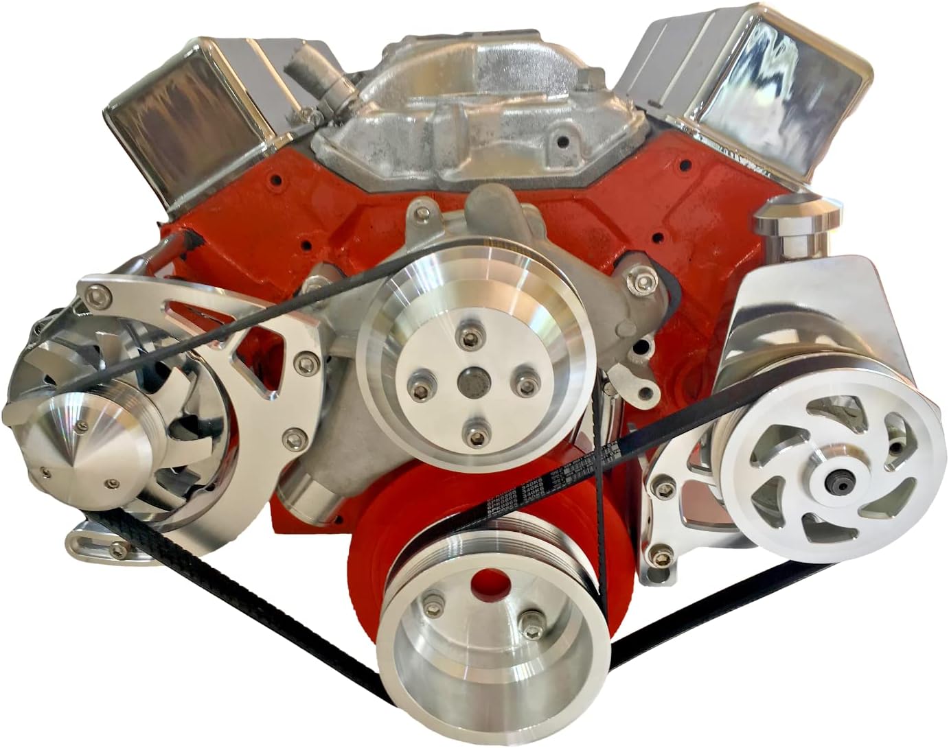 Small Block Chevy Serpentine Pulley Conversion Kit ALT PS Long WP SBC LWP