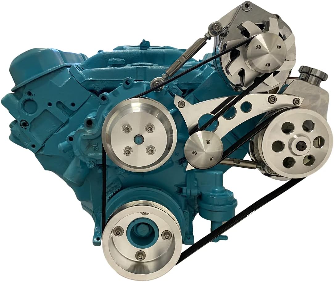 Small Block Chevy Serpentine Pulley Conversion Kit ALT PS Long WP SBC LWP 1
