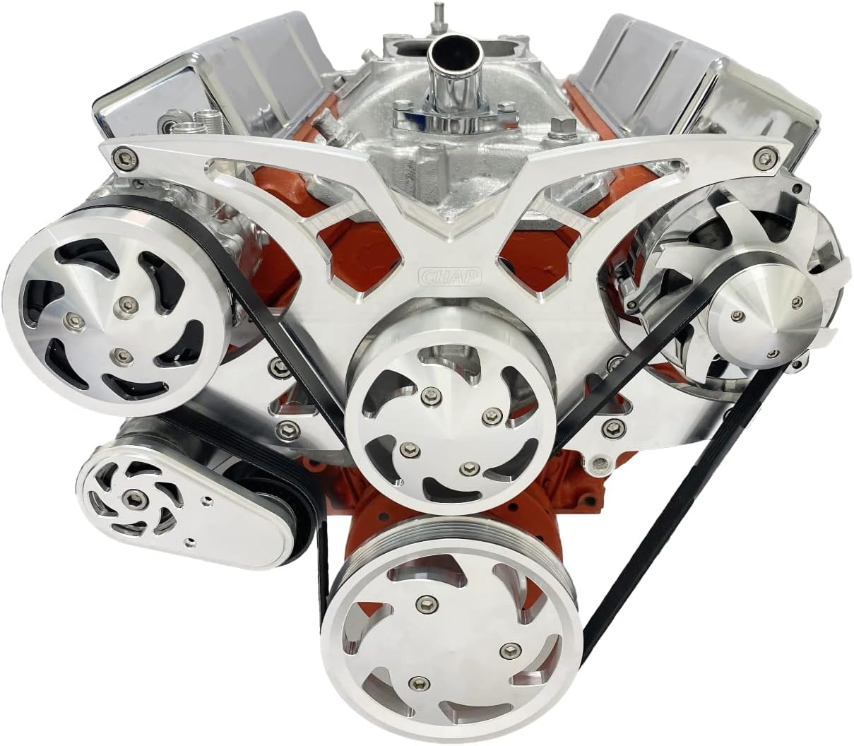 Small Block Chevy Serpentine Pulley Conversion Kit ALT PS AC SBC Circles