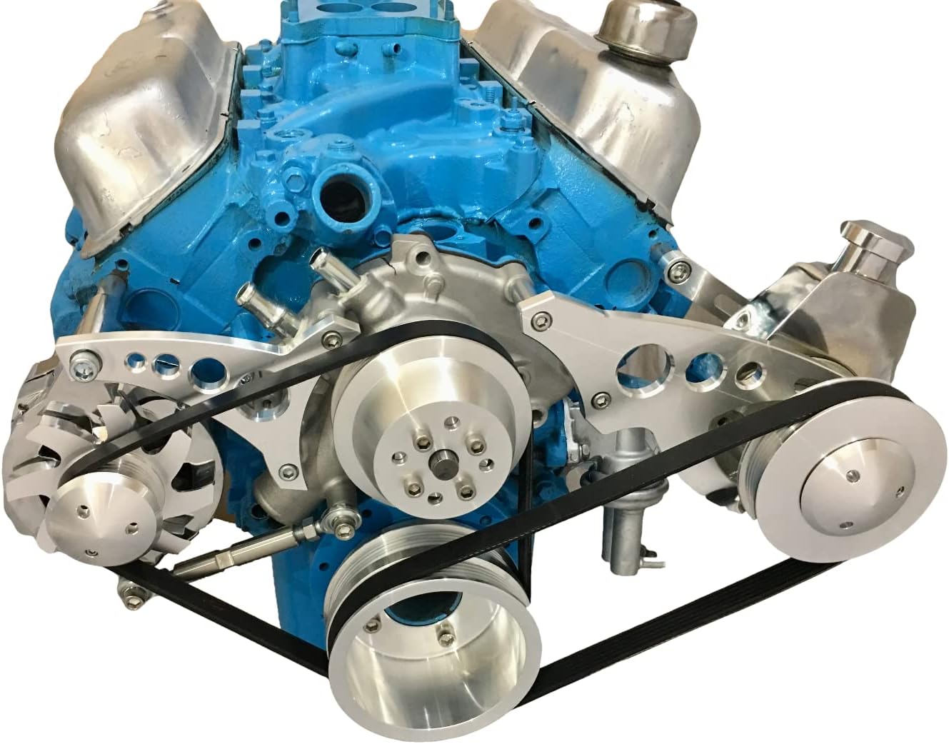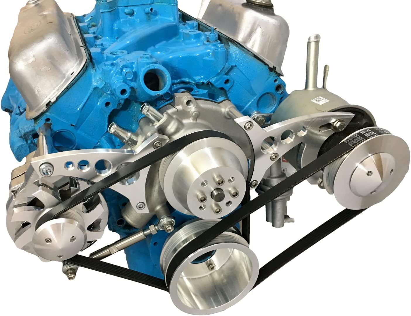 Compatible with SBF 351W Serpentine Pulley Conversion Kit Alt PS Saginaw Small Block Ford 2 - Passenger Side Lower Radiator Hose. 3 Bolt damper 65-69