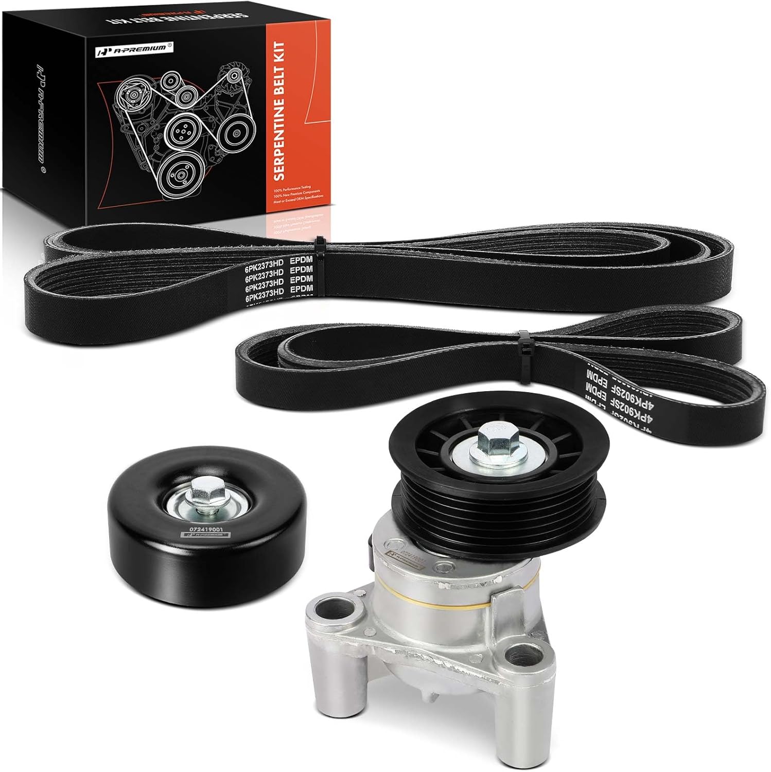 A-Premium Engine Serpentine Belt Drive Kit Compatible with Chevrolet Silverado 1500, Tahoe, Colorado, Suburban 1500 & GMC Sierra 1500, Yukon, Canyon & Cadillac Escalade - OHV V8 4.8L 5.3L 6.0L 6.2L