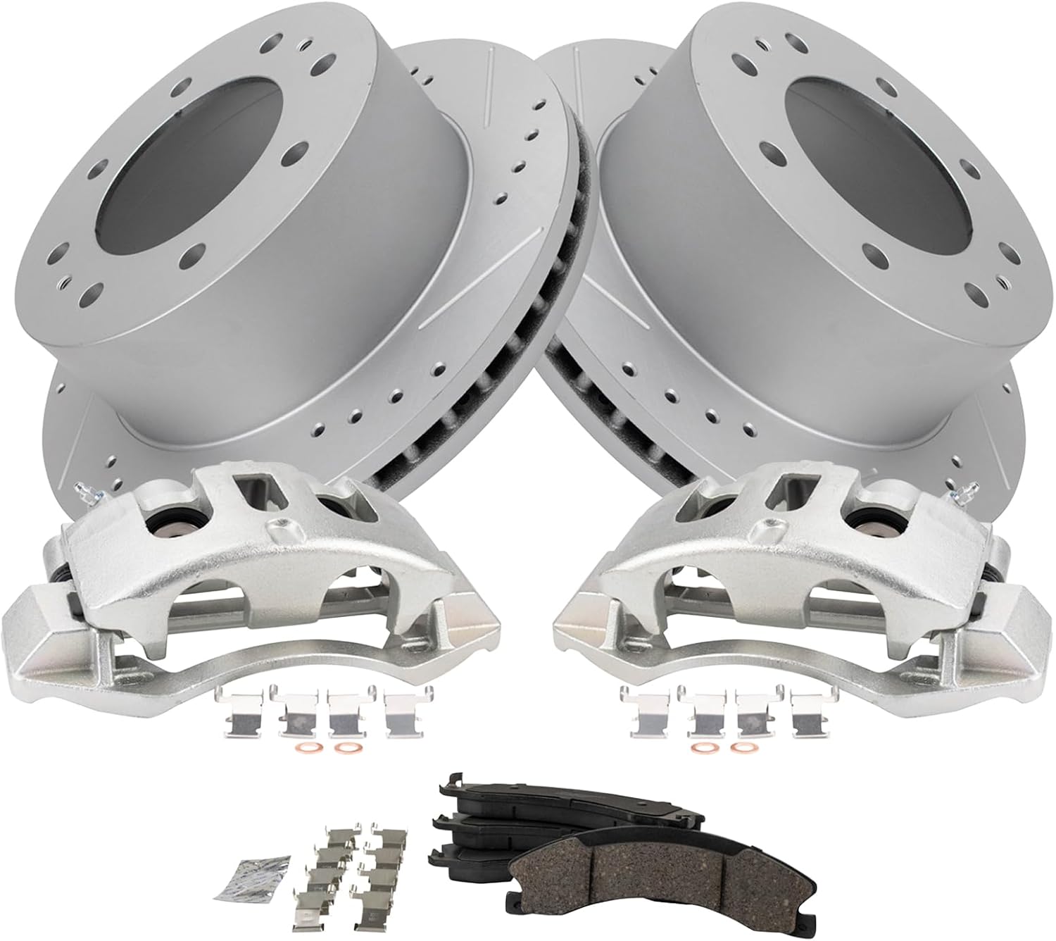 TRQ Rear Brake Pad & Rotor Kit Slotted X Drilled Performance Premium G-Coated Ceramic Compatible with 2016 Chevrolet Suburban 3500 HD