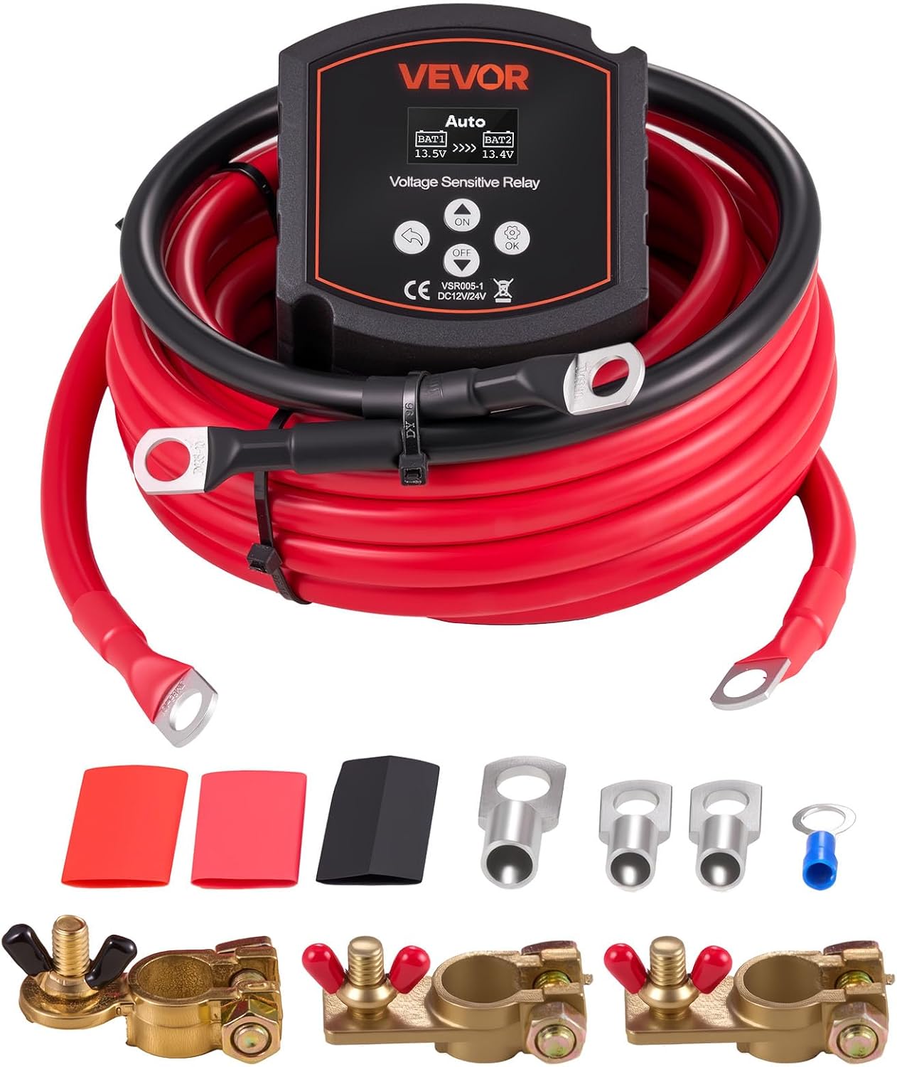 VEVOR Dual Battery Isolator Kit, 12V 300 Amp, Manual and Automatic VSR Voltage Sensitive Relay with Voltmeter, LCD Screen, Smart Battery Isolator, Compatible with Lead-Acid Batteries, for UTV, ATV