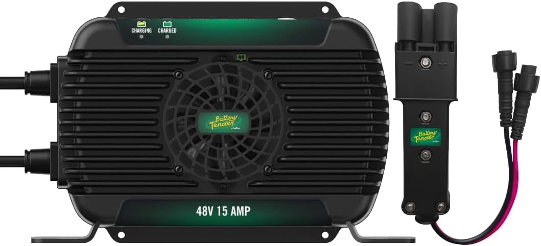 Battery Tender PowerPlus 48V 15AMP Charger and Yamaha G19/G22/G29 DC Plug Bundle for Golf Cart, Boats, Industrial