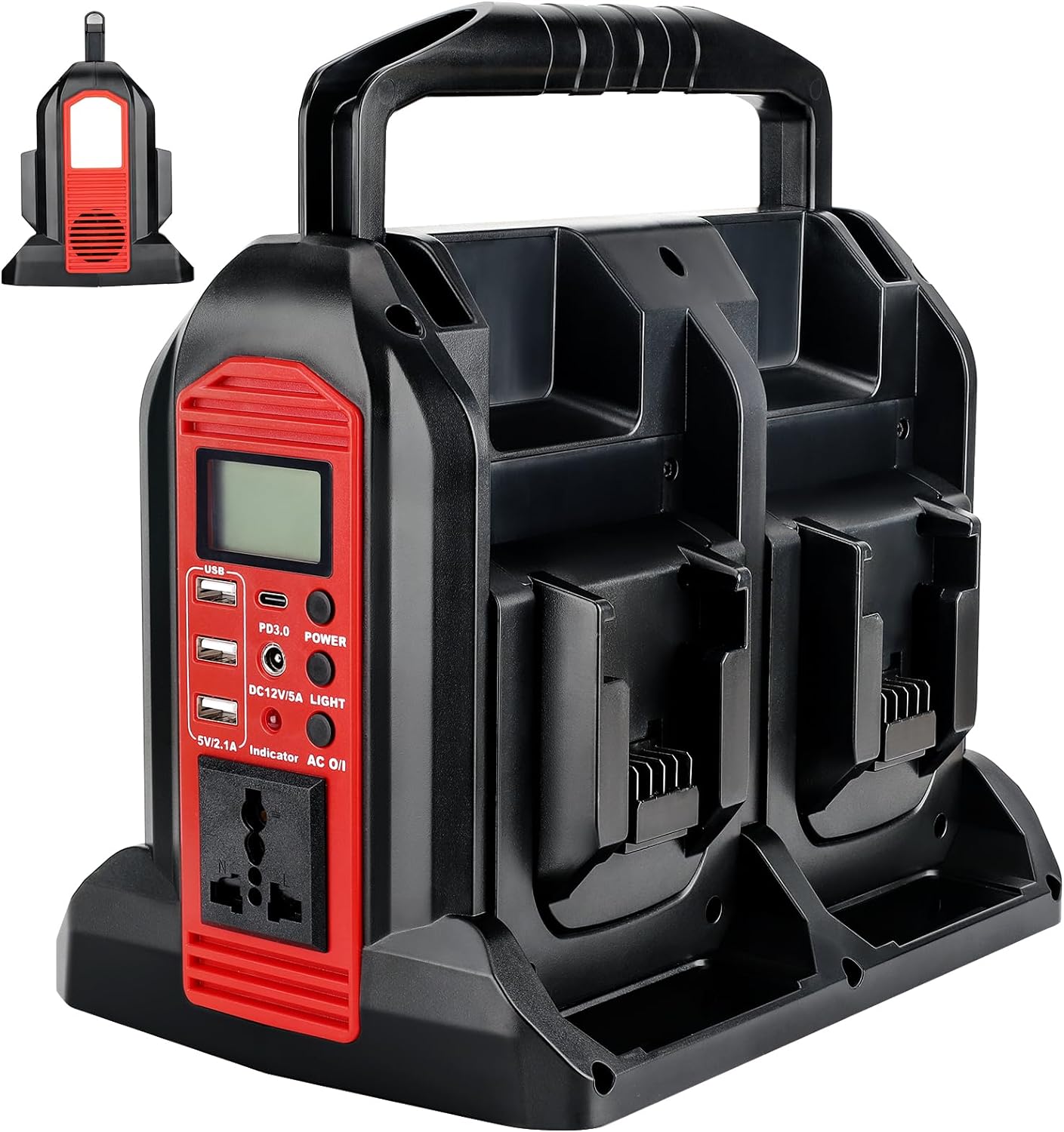 1200W Power Inverter & 6A Rapid Charger for DeWalt 20V Battery – 6-Port DC to AC 120V Converter, 3 USB-A + 3 USB-C, 300lm LED Light for Camping, Travel, Emergencies(Battery not Included)