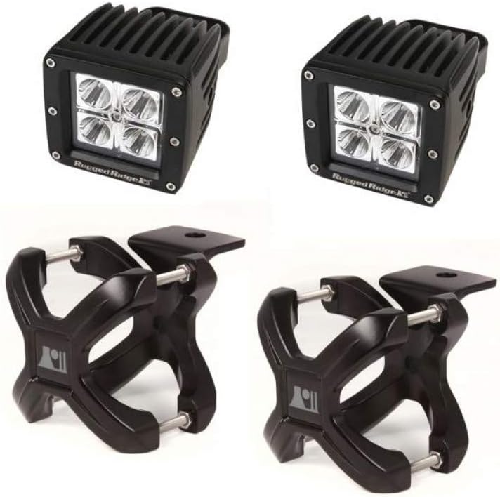 Rugged Ridge | Light Kit, X-Clamp/Square LED, Large, Black, 4 Pieces | 15210.02