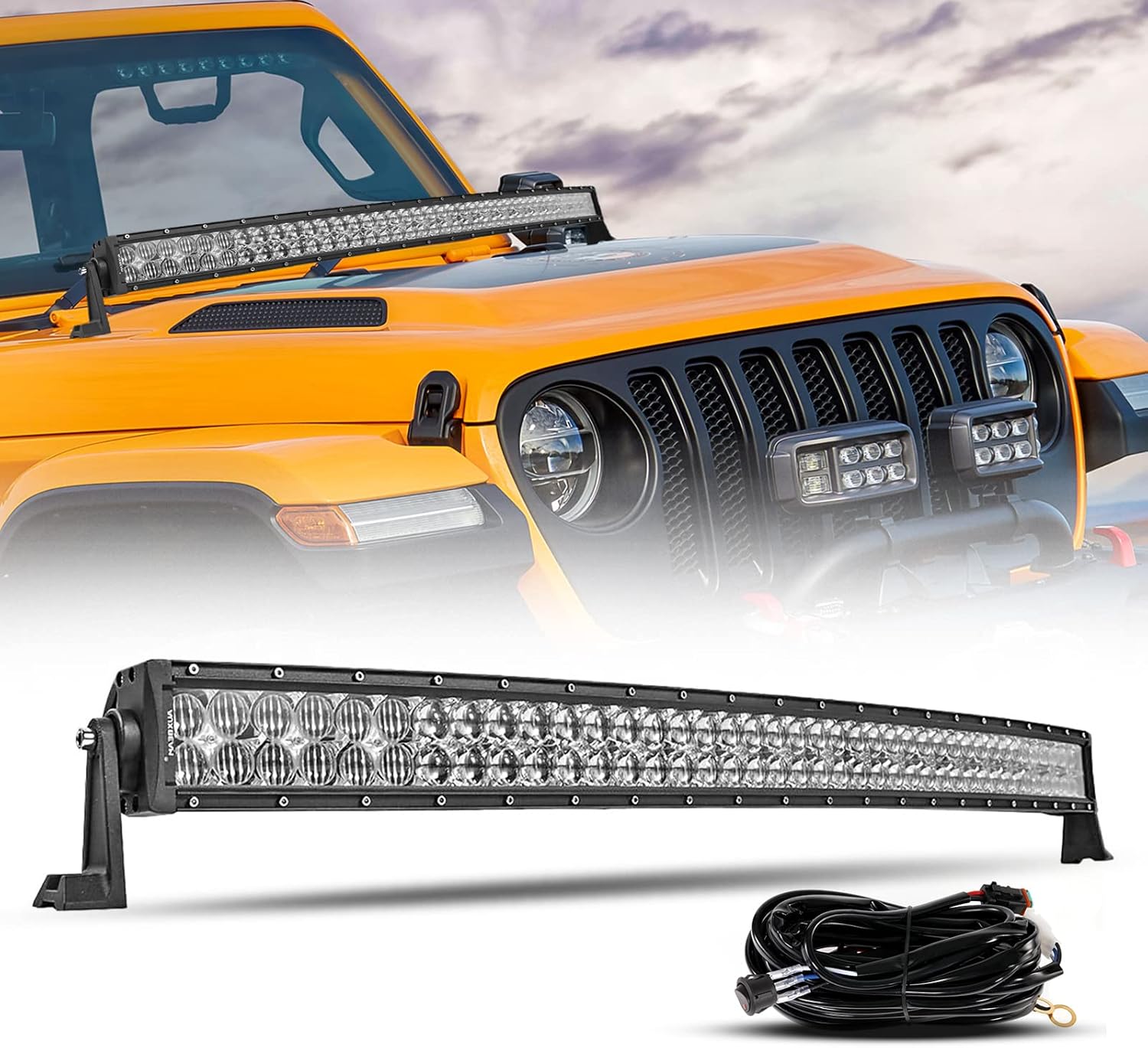 Auxbeam 42” LED Light Bar 240W LED Work Light Off Road Lights Spot Flood Combo Beam 80pcs3W Curved 5D Lens for Car SUV UTV ATV Pickup Truck with Wiring Harness