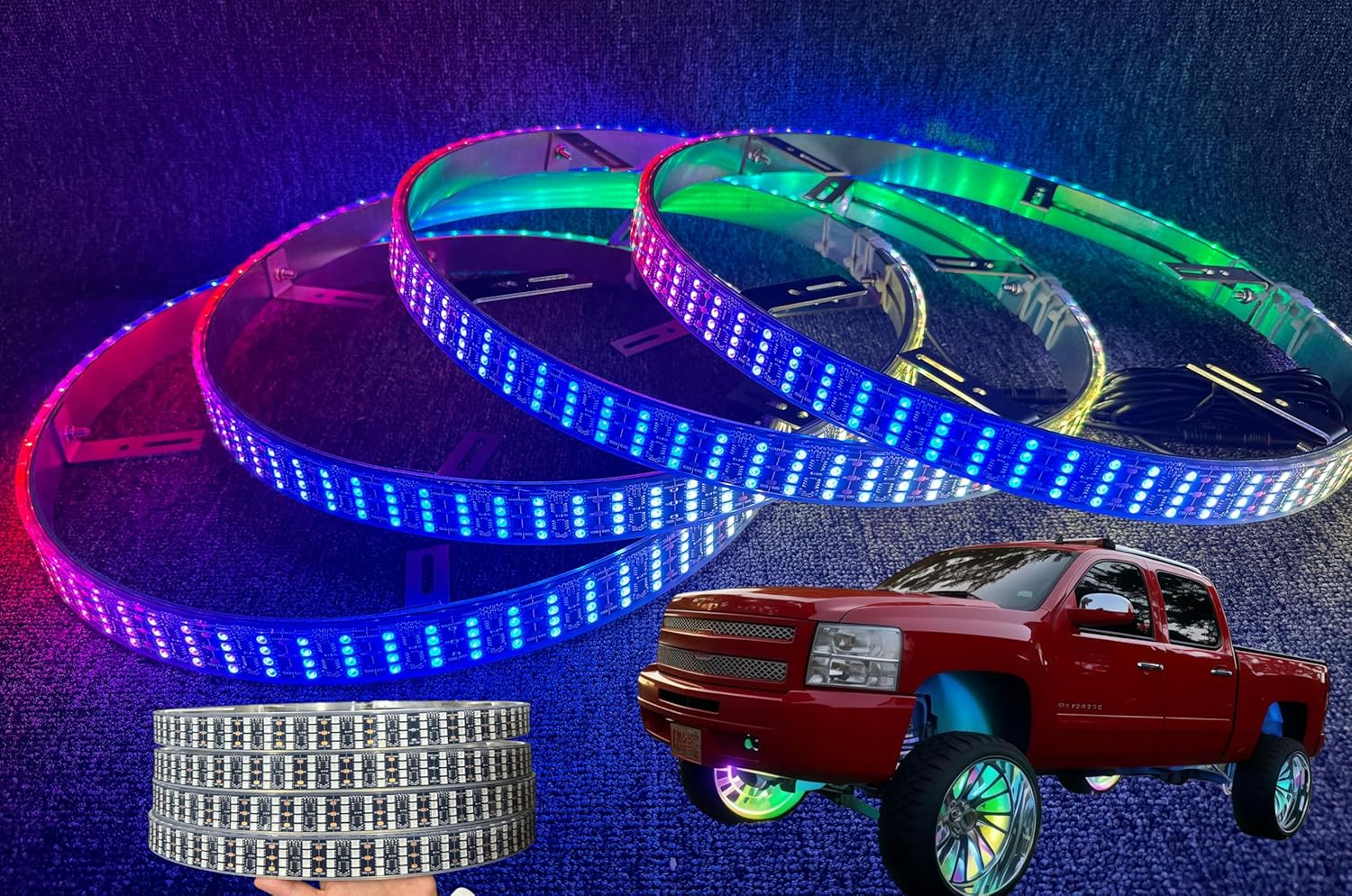 17.5" Quad Row RGB Dream Color Chasing Wheel Rim Lights KIT - Bluetooth Remote Control, Addressable Breath & Flash Modes, for Truck/Car/Off-Road, LED Wheel Lights for Cars