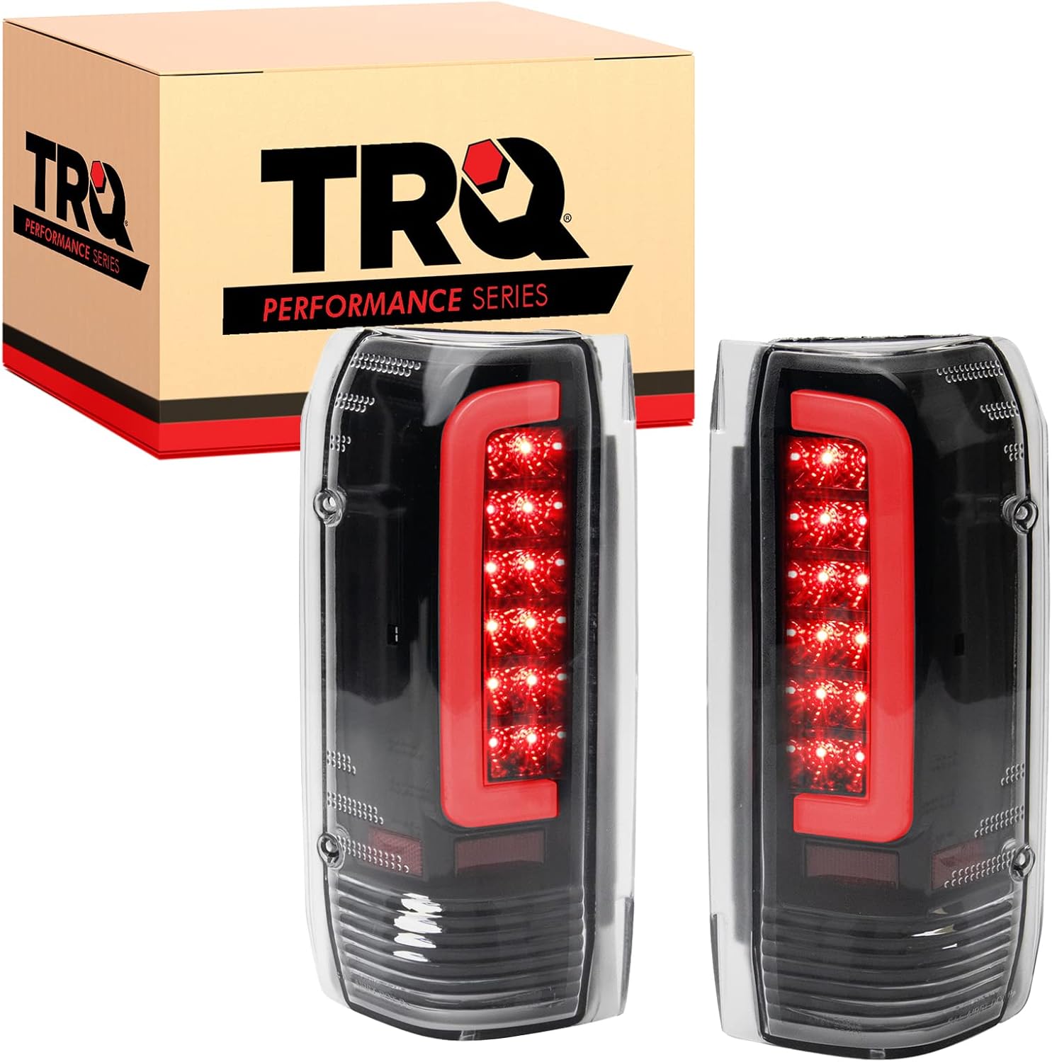 TRQ 2 Piece Driver & Passenger Side Tail Light Assembly Set LED C Light Bar Clear Black Housing Compatible with 1990-1996 Ford Bronco F150 1990-1997 F250 1997 F250 HD F350 With Styleside Bed FO2801105