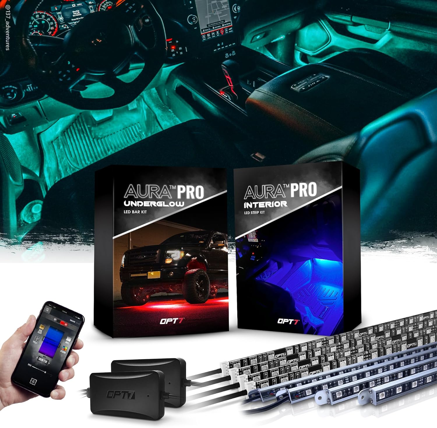 OPT7 Aura Interior & Underglow Bundle Kit with App & Remote Control, Music Sync, RGB Multicolor Modes, Truck LED Lights, Trucks Accessories, Halloween Decor