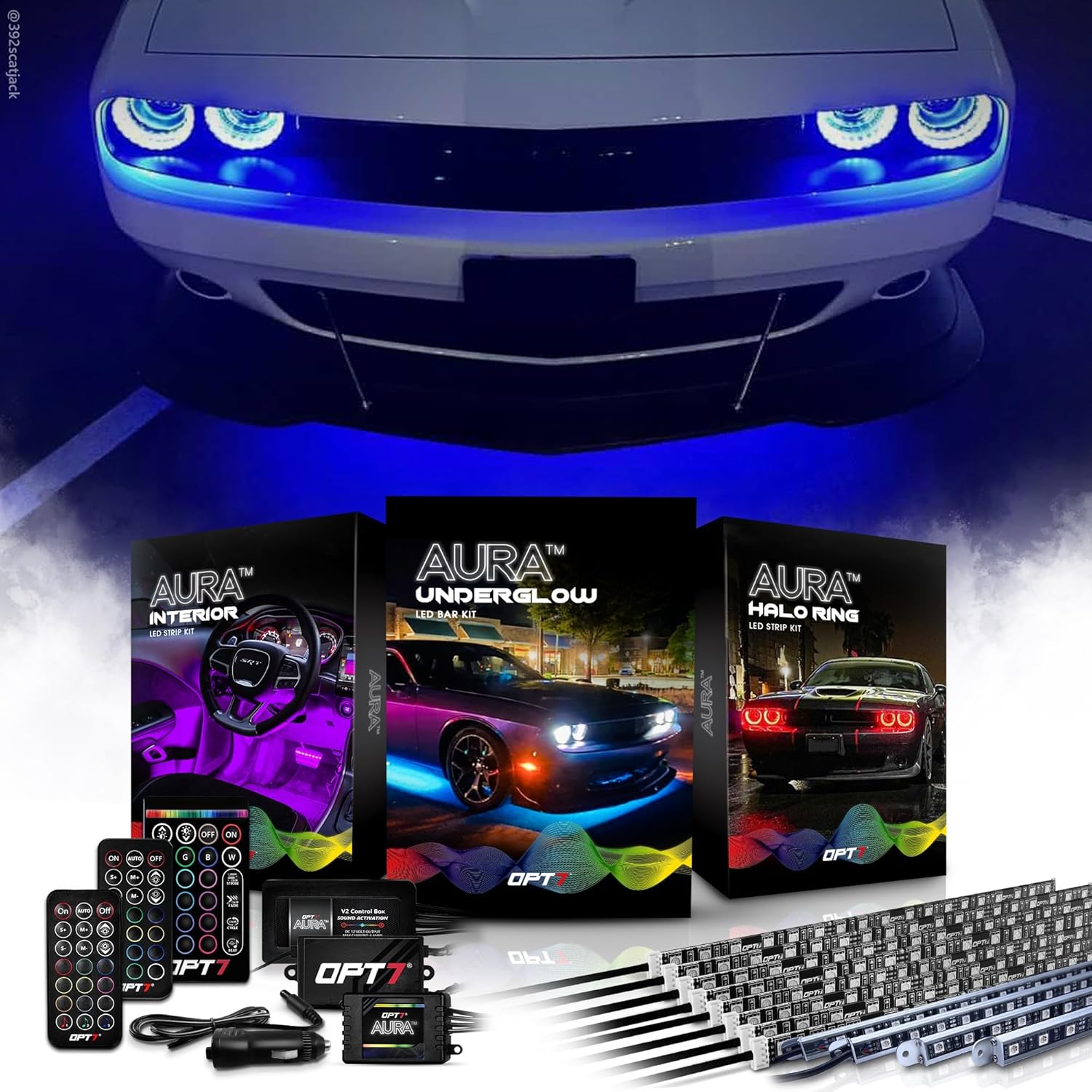 OPT7 Halo & Interior & Underglow Bundle Lights Kit for 2008-2023 Dodge Challenger Car Accessories, with Remote Control, Rigid LED Light Bar, RGB Music Sync Lighting, Christmas Decoration