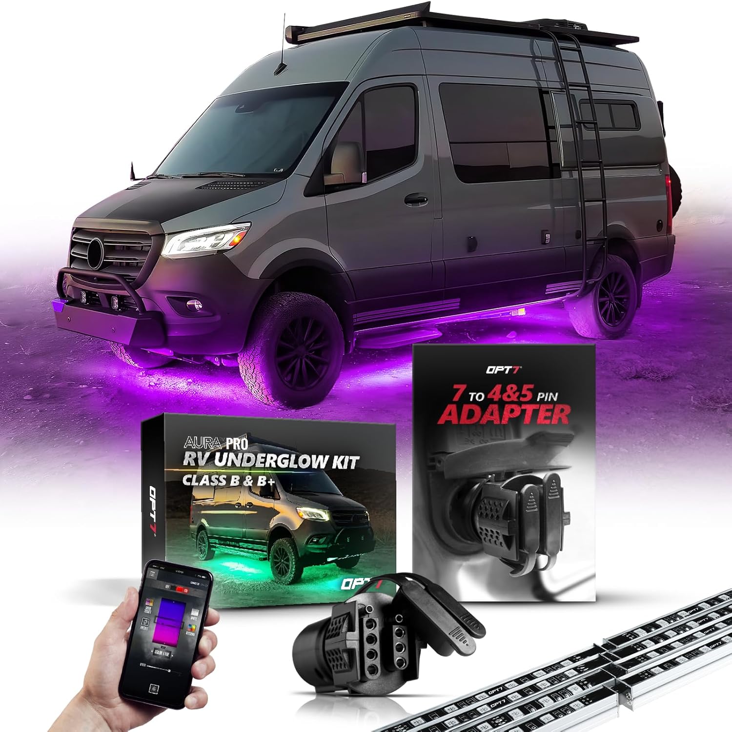 OPT7 Aura Pro Underglow Lights for Class B and 7 Pin to 4 and 5 Pin 2 in 1 Trailer Adapter