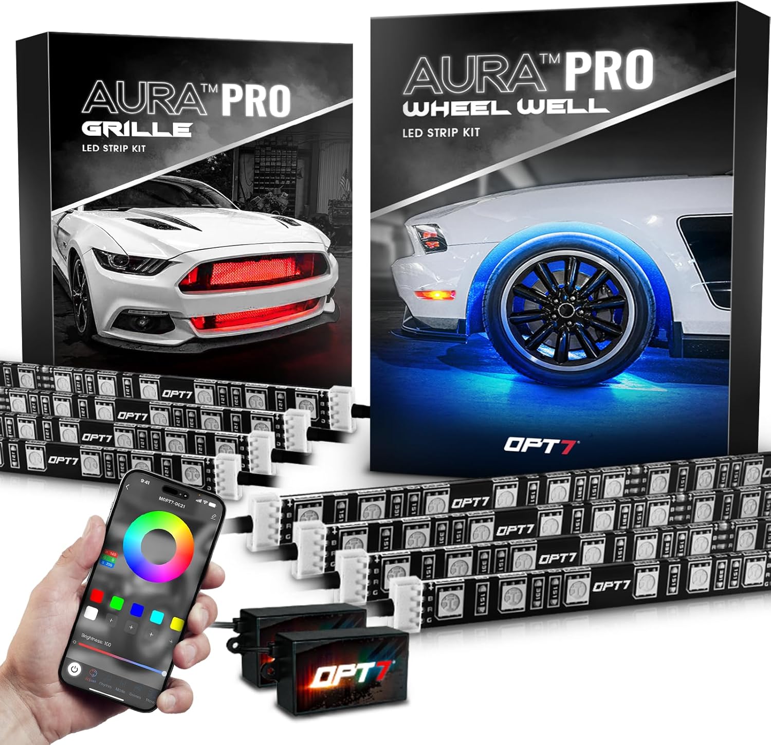 OPT7 Aura Pro Wheel Lights & Grille Lights LED Bundle Kit with App & Remote Control, Multicolor Modes, Music Sync Exterior Decor Accessories for Car Truck RV SUV