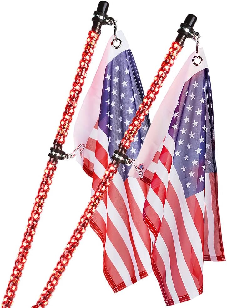 Xprite 2PC 5FT Red LED Spiral Whip Lights,w/American Flag Safety Flexible Antenna Pole Whip Lighting for Offroad Jeep Sand Dune Buggy UTV ATV 4X4 Polaris RZR Trucks Yamaha Can-am Maverick X3