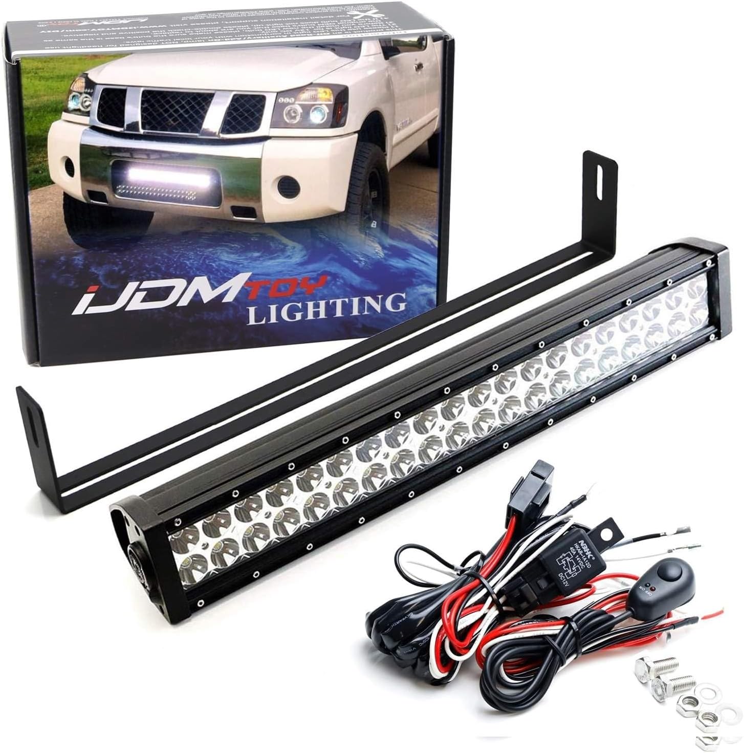 iJDMTOY Lower Grille 20-Inch LED Light Bar Compatible with 2003-15 Nissan Titan, Includes (1) 120W High Power LED Lightbar, Lower Bumper Opening Mounting Brackets & On/Off Switch Wiring Kit