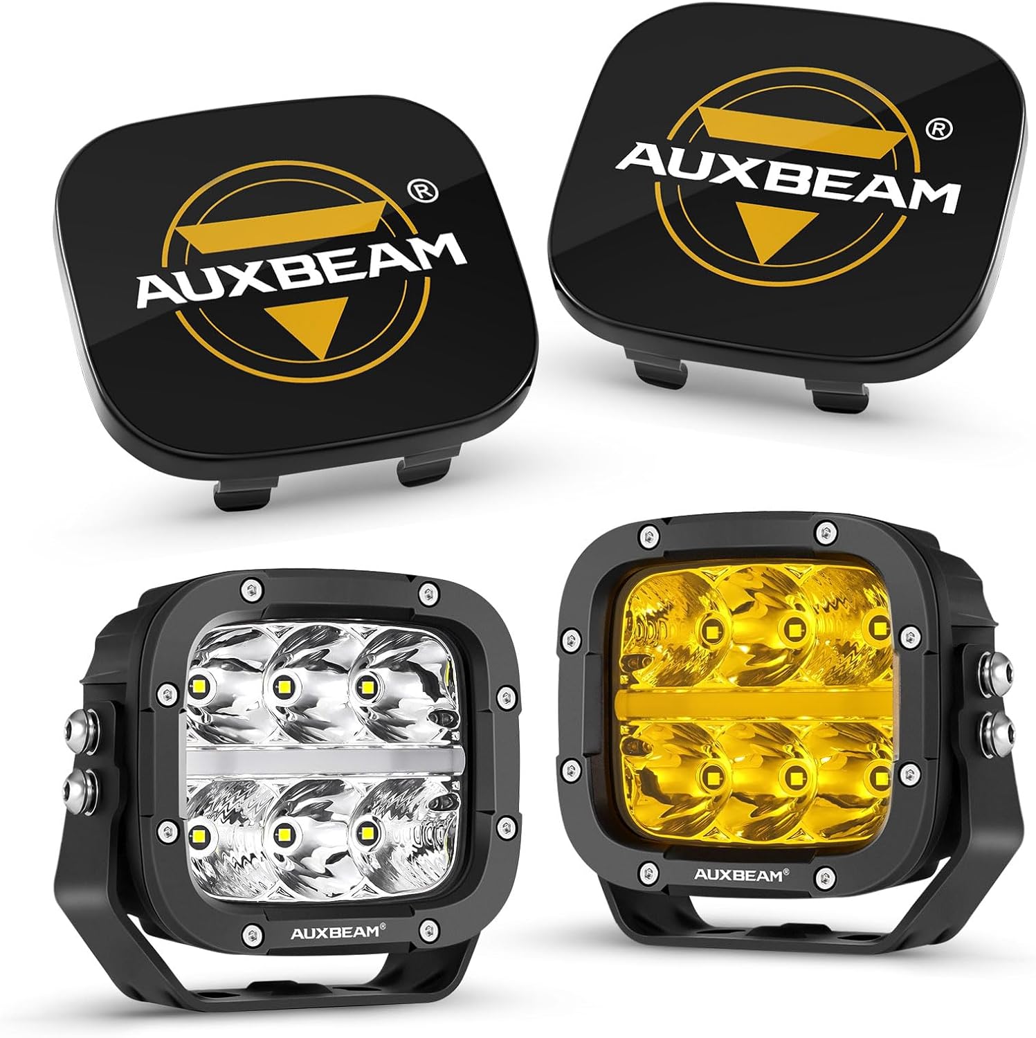 Auxbeam Color Play Series 3 Inch LED Pods Flood Beam with Protective Covers Bundle, Amber White DRL & Turn Signal Multi-Modes Cube Off-Road Fog Lights Automotive Light Bar (ZD000866, ZD000864)