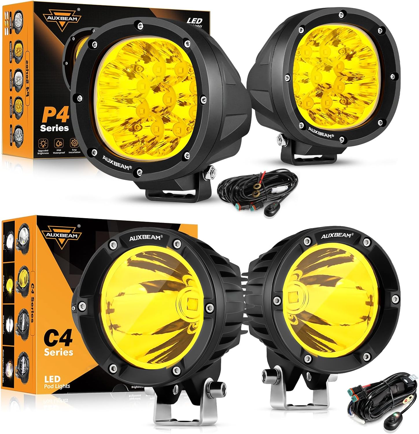 Auxbeam 4In 90W Amber Round Spot Led Offroad Lights + 4In 72W Amber Spot Led Light Pod