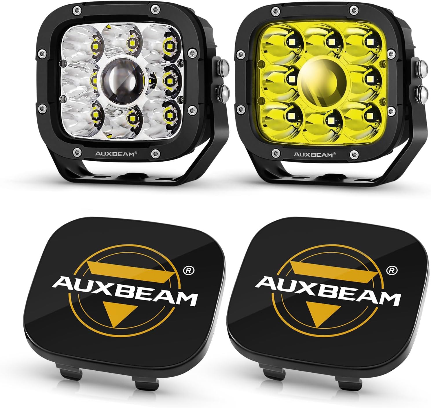 Auxbeam 5" 132W LED Pods with Black Covers Bundle, Amber DRL 2 Modes Light Bar Off Road LED Cube Square Fog Lights Driving Lights for Trucks Car ATV UTV Jeep