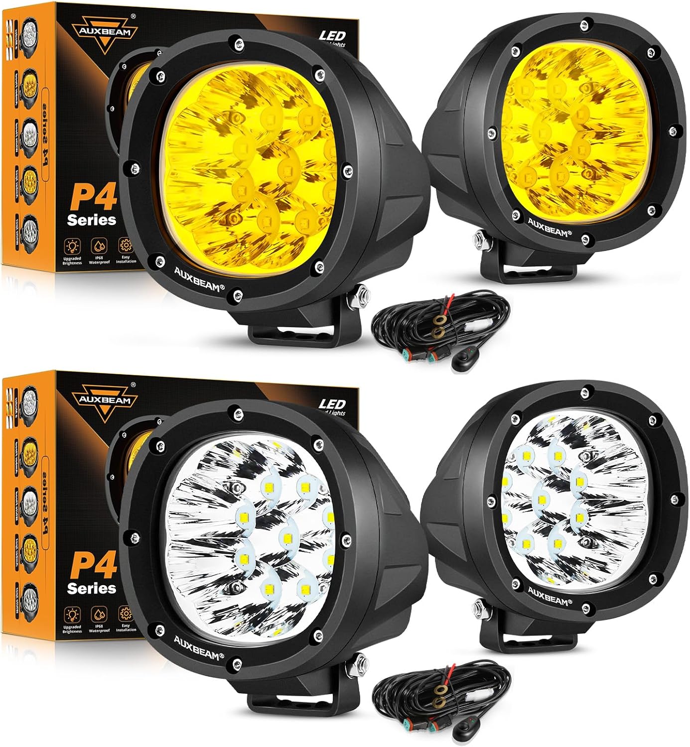 Auxbeam 4In 90W Amber Round Spot Led Offroad Light + Auxbeam 4In 90W Round Spot Led Offroad Lights