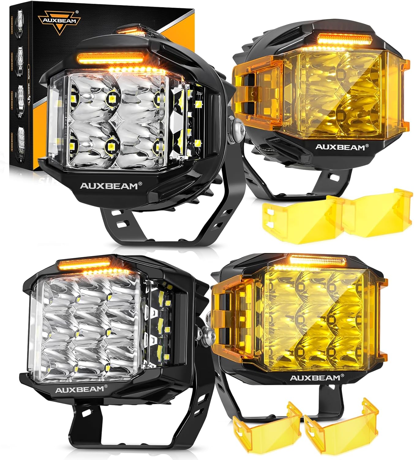 Auxbeam V-MAX Series 4Inch Cube LED Light Pod+5Inch Cube Led Pods 270° Side Shooter LED Offroad Lights