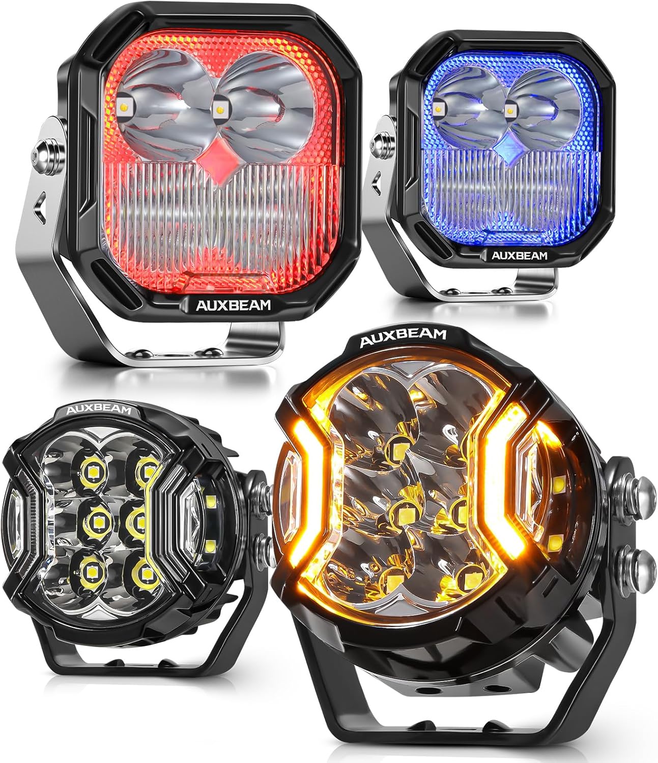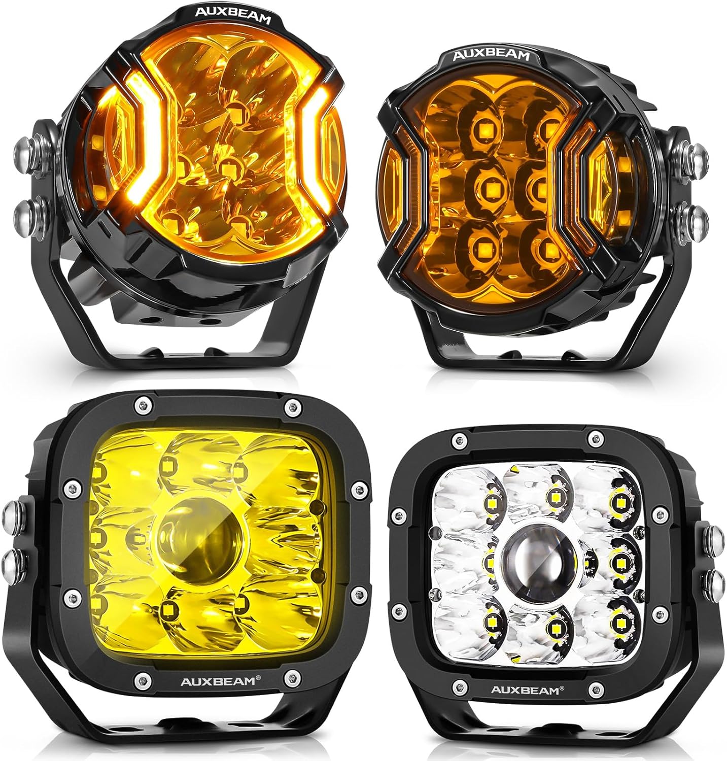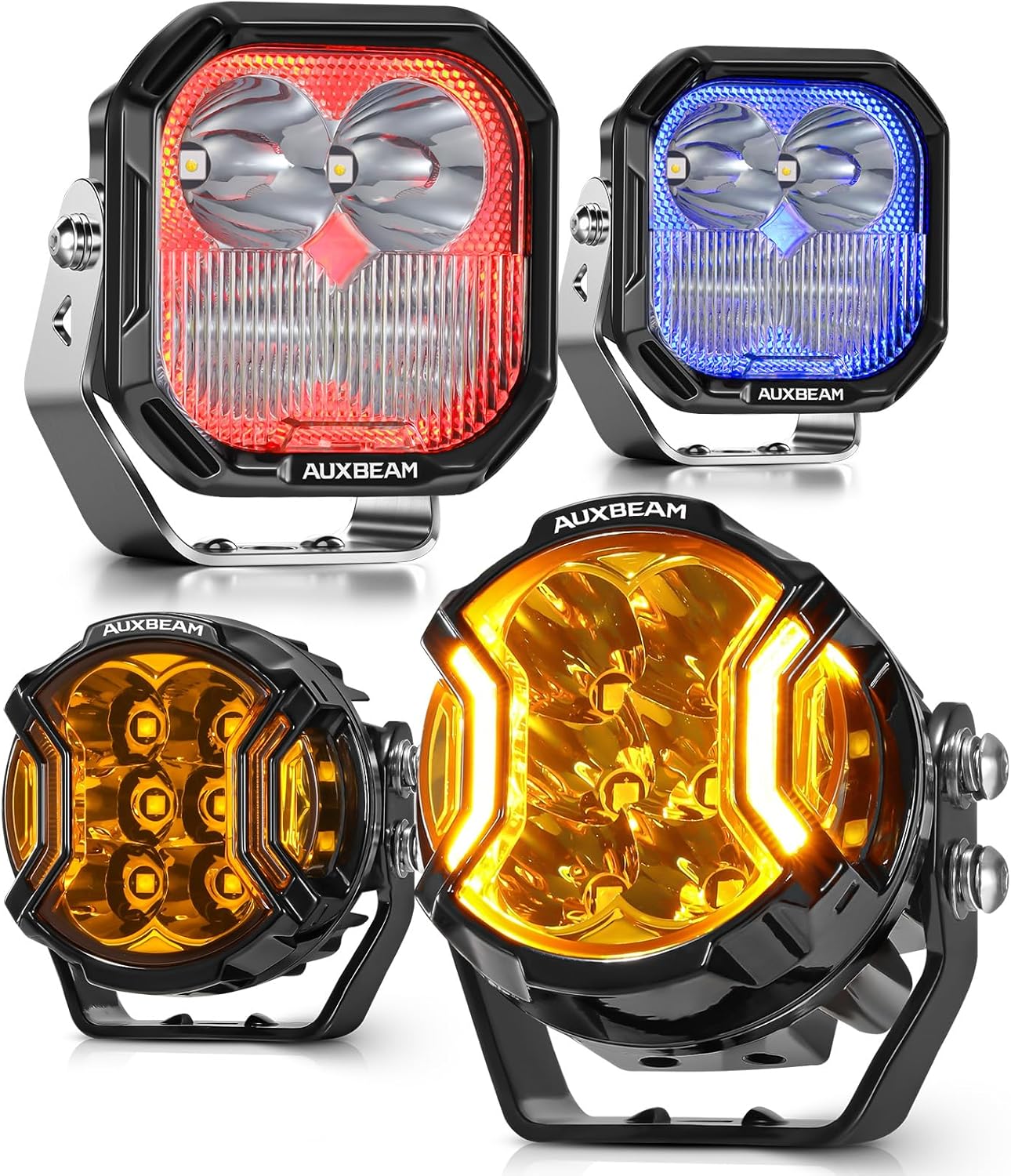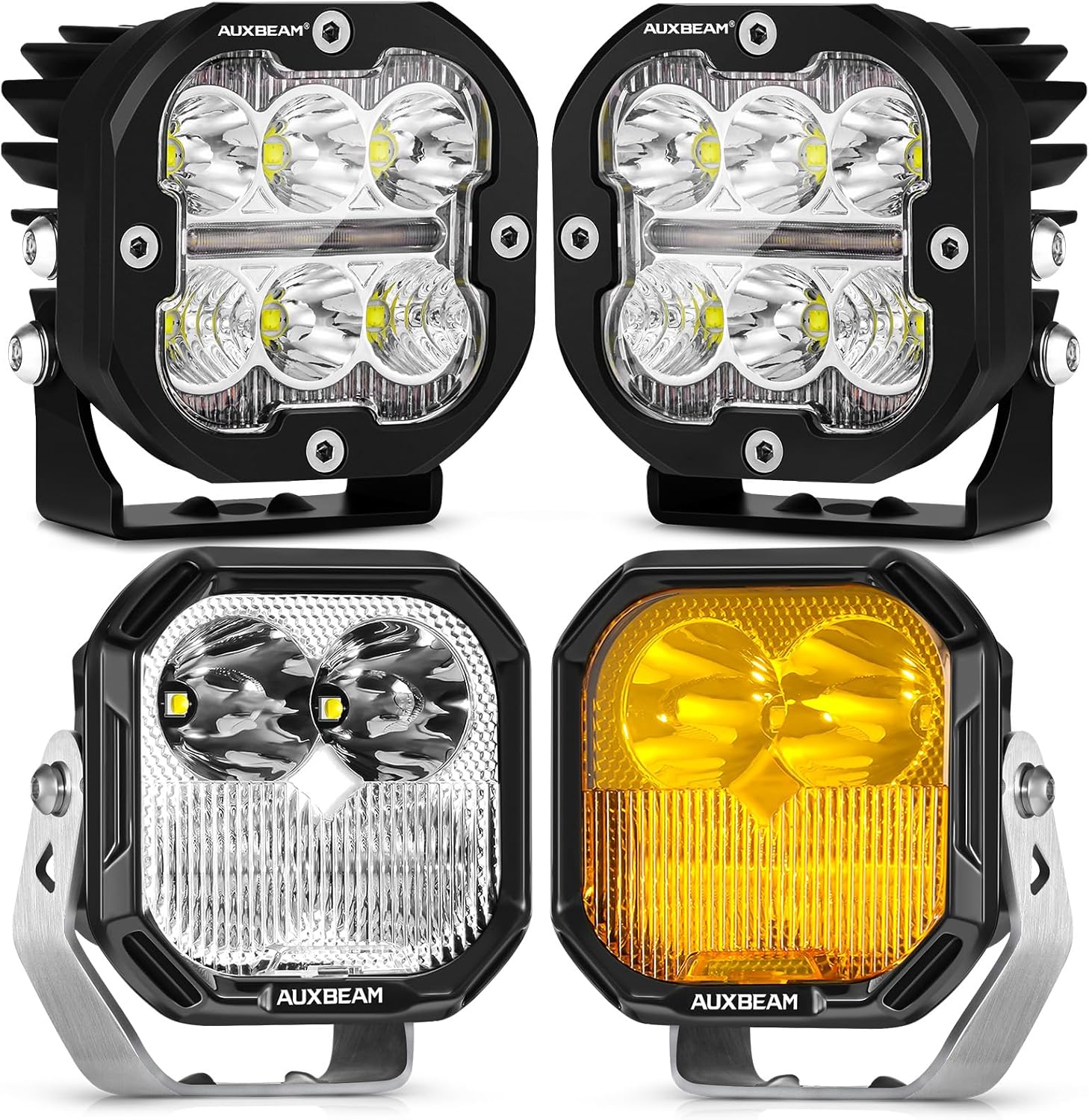 Auxbeam XP-Ultra Series 3 inch LED Pods & Color Play Series 3 Inch LED Offroad Driving Light Amber/White DRL & Turn Signal Spot Flood Combo Beam Fog Ditch Lights (4PCS)