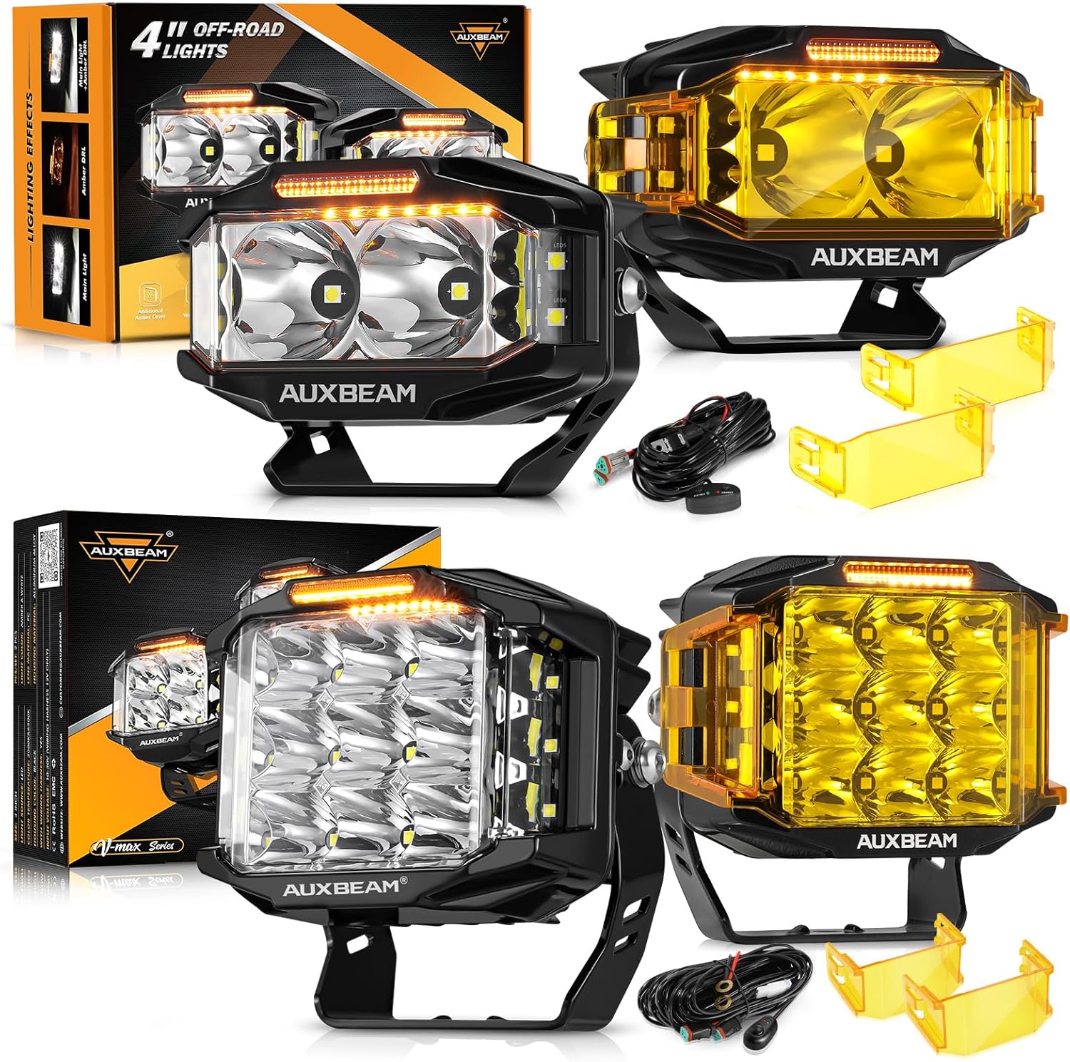 Auxbeam 4In 90W Amber Round Led Offroad Lights 2PCS 9000LM+Auxbeam V-MAX Series 7" Led Pods Lights with Amber Covers