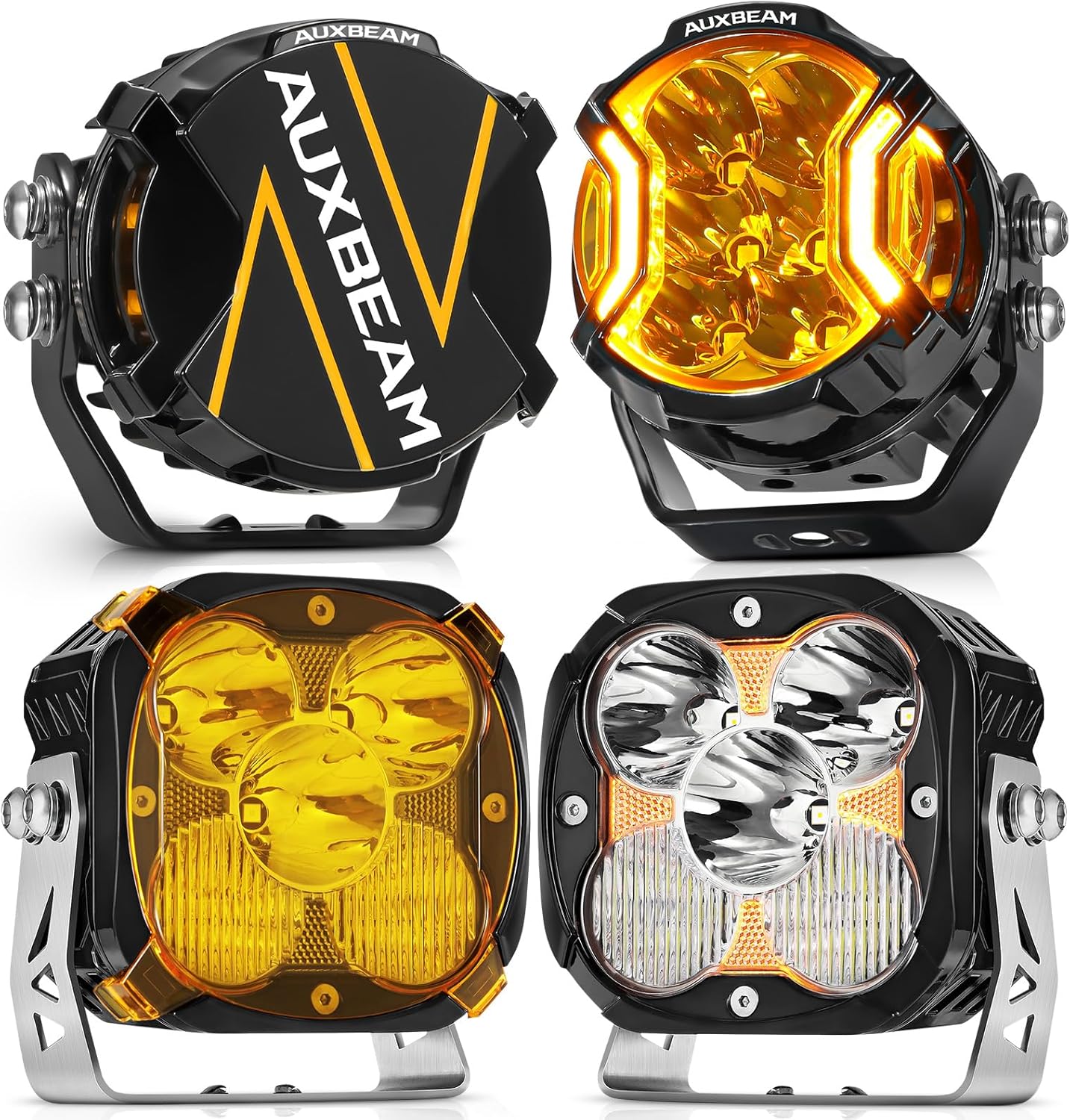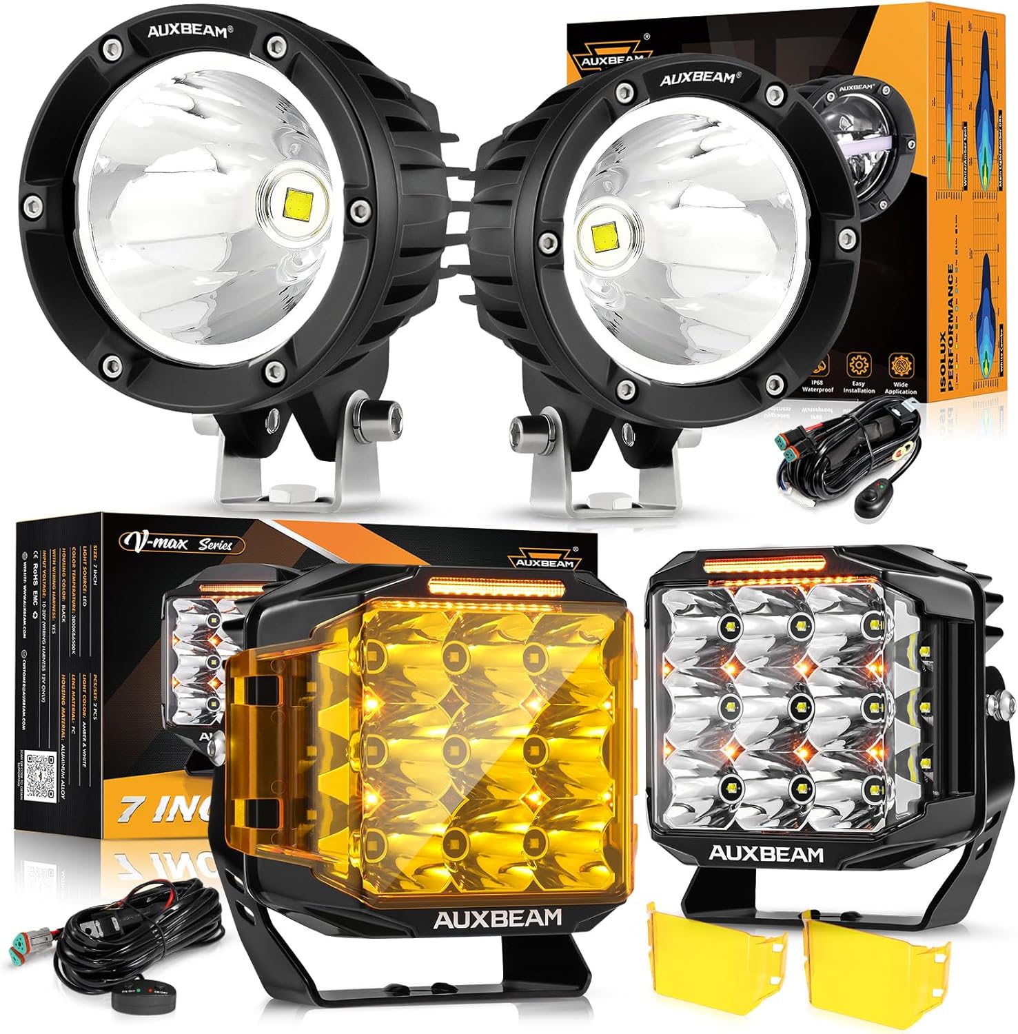 Auxbeam 4In 72W Round Led Offroad Light, 2PCS 7200LM Spot Light Pod+Auxbeam V-MAX Series 7" Led Pods Lights with Amber Covers