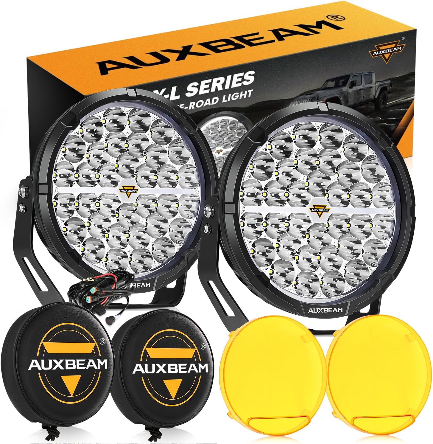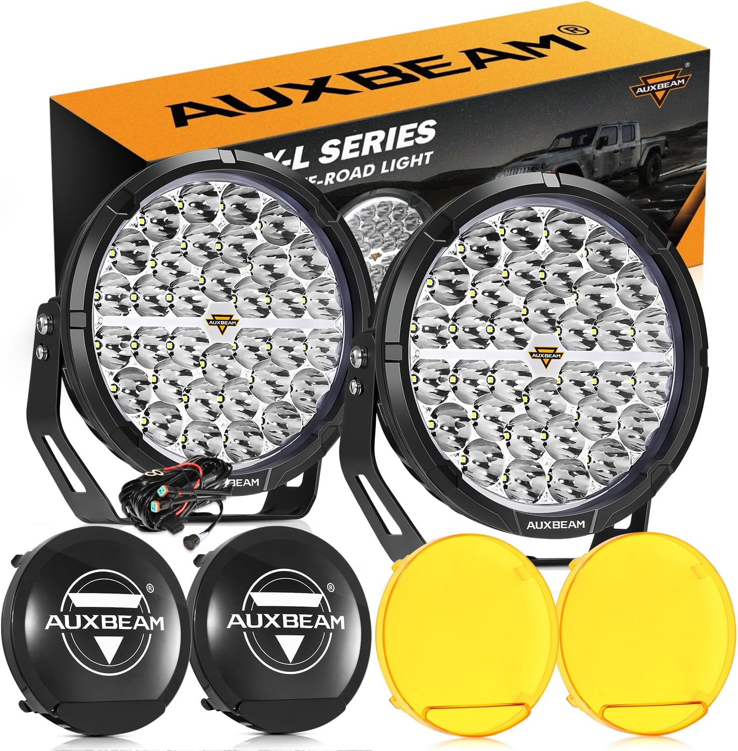 Auxbeam RAY-L Series 9 Inch Round Offroad Lights Bundle with Amber & Protective Covers, DRL 3 Modes Multi-Function Spot Beam Off Road Automotive Light Bar (ZD000858, ZD000699, ZD000701)