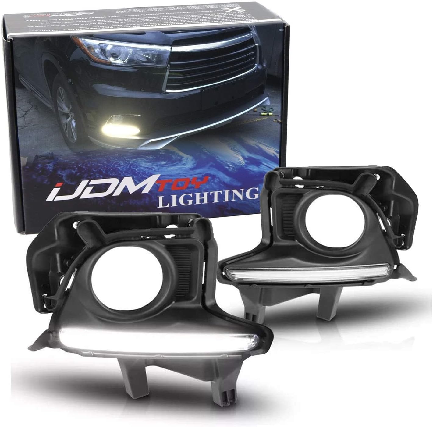iJDMTOY Xenon White LED DRL Fog Lamp Kit Compatible with 2014-2016 Toyota Highlander, OEM Style Exact Fit LED Daytime Running Lights w/Fog Light Bezels