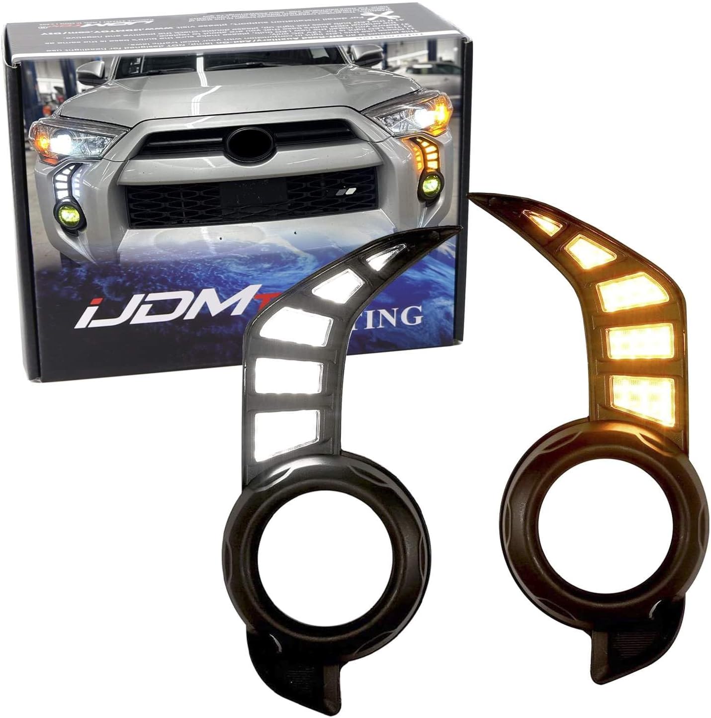iJDMTOY Switchback LED Daytime Running Light Kit Compatible With 2014-2024 Toyota 4Runner, White/Amber LED Foglamp Bezel Replacement Assembly w/Dynamic Sequential Flash Turn Signal Feature