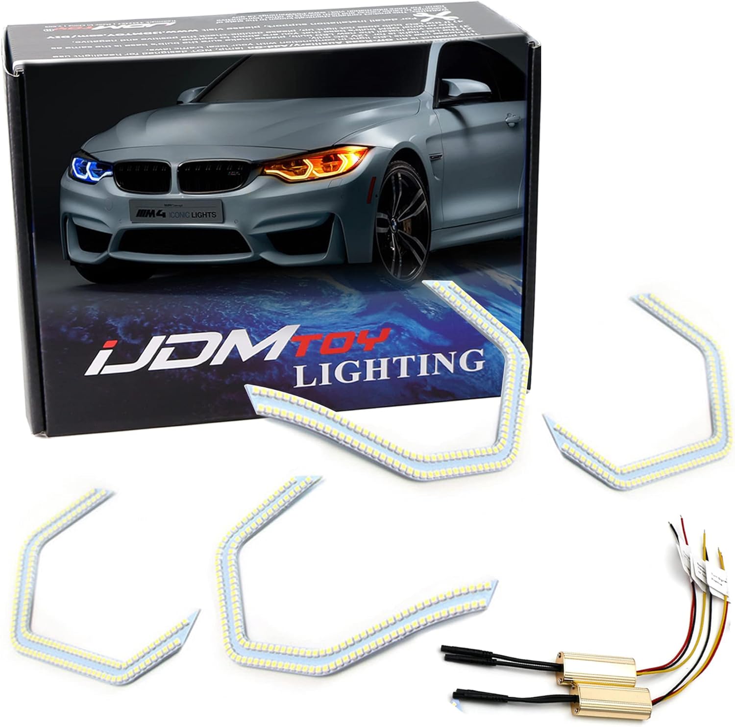 iJDMTOY 4pc 540-SMD Concept M4 Iconic Style Switchback Dual-Color LED Angel Eye Kit w/Relay Wirings Compatible with BMW 2 3 4 5 Series Light Retrofit
