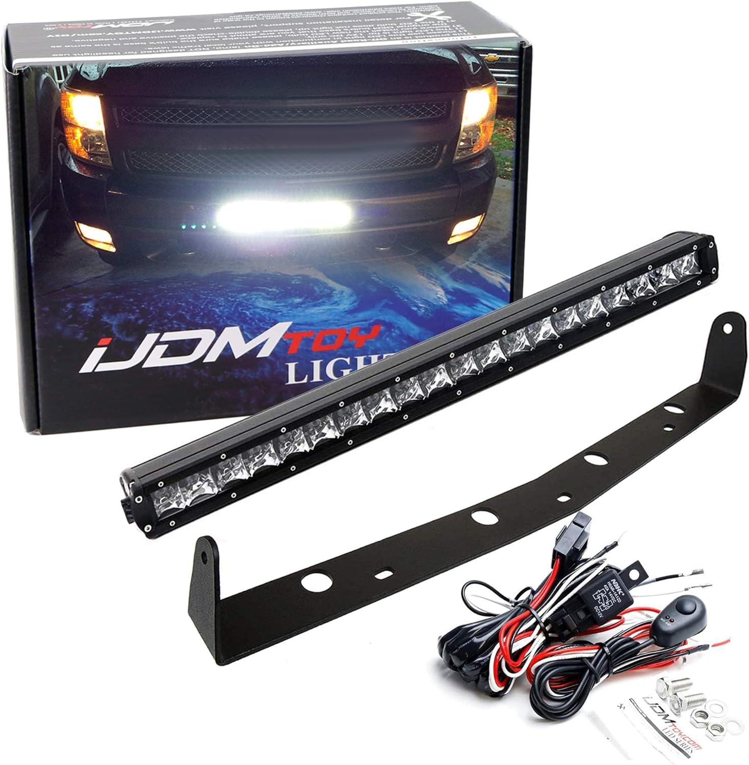 iJDMTOY Lower Grille 20-Inch LED Light Bar Compatible with 11-13 Chevy Silverado 1500, 2007-10 2500 3500 HD, Includes 100W High Power LED Lightbar, Bumper Mount Brackets & Switch Wiring Kit