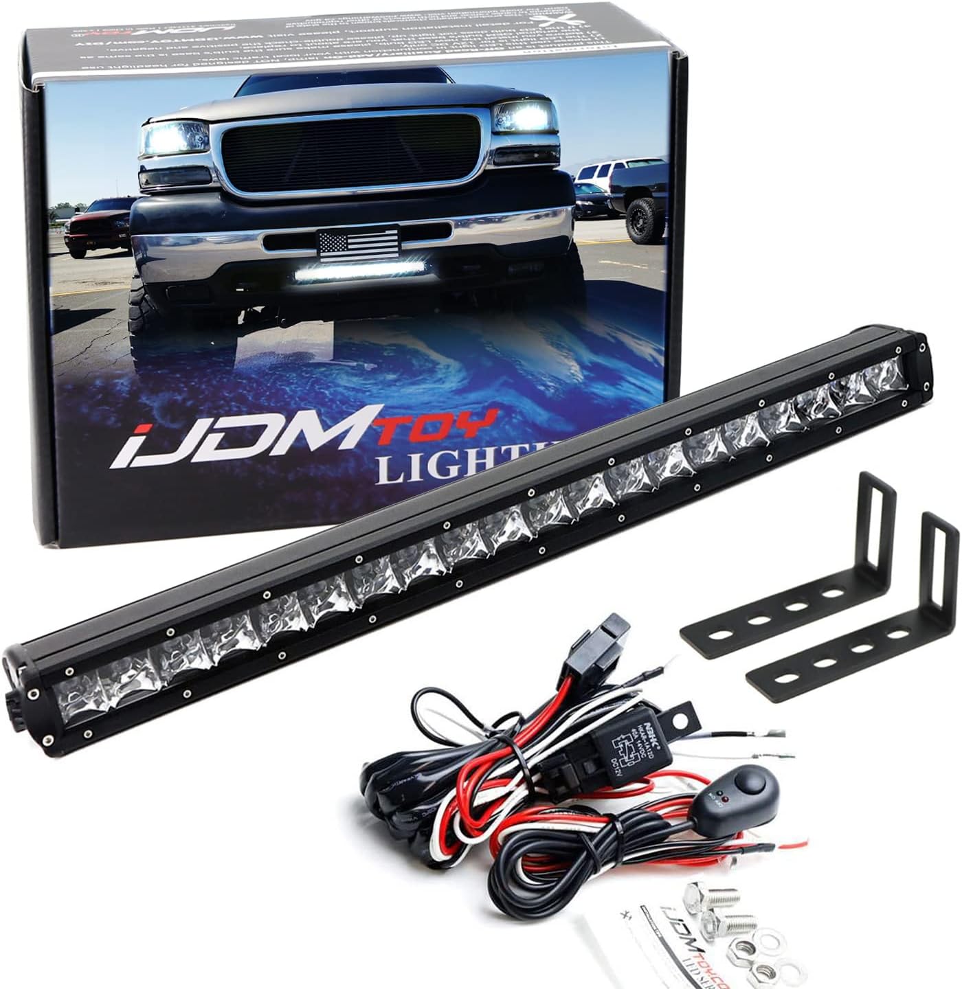 iJDMTOY Lower Grille Mount 20-Inch LED Light Bar Kit Compatible with 2000-02 Chevrolet Silverado 2500HD, 01-02 3500HD, Includes 100W Single Row LED Lightbar, Mounting Brackets & On/Off Switch Wiring