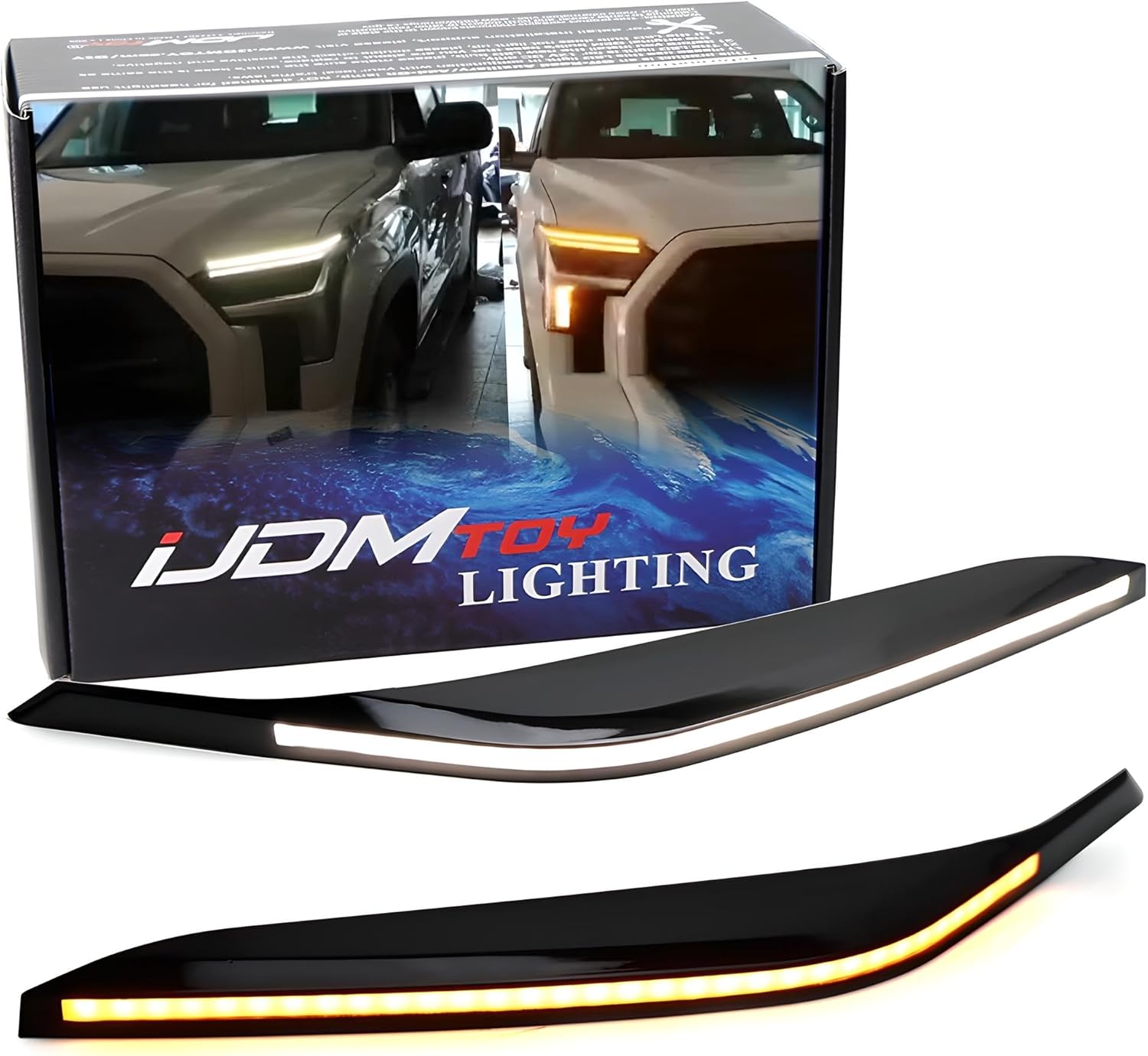 iJDMTOY Above Front Road Illuminating Light Fit Switchback LED Daytime Running Eye Lid Kit Compatible With 2022/23-Up Tundra/Sequoia, White LED DRL, Amber LED Sequential Blink Turn Signal Feature