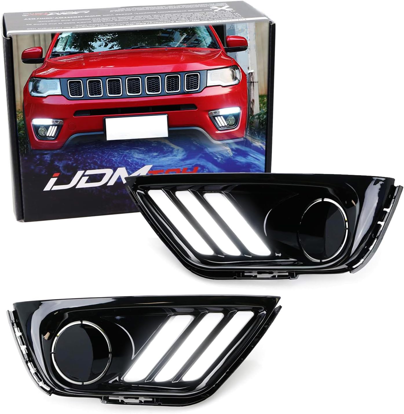 iJDMTOY Switchback LED Daytime Running Light Kit Compatible with Jeep 2017-2020 Compass, OEM Replacement White/Amber LED Bezel Assembly w/Sequential Flash Turn Signal Function