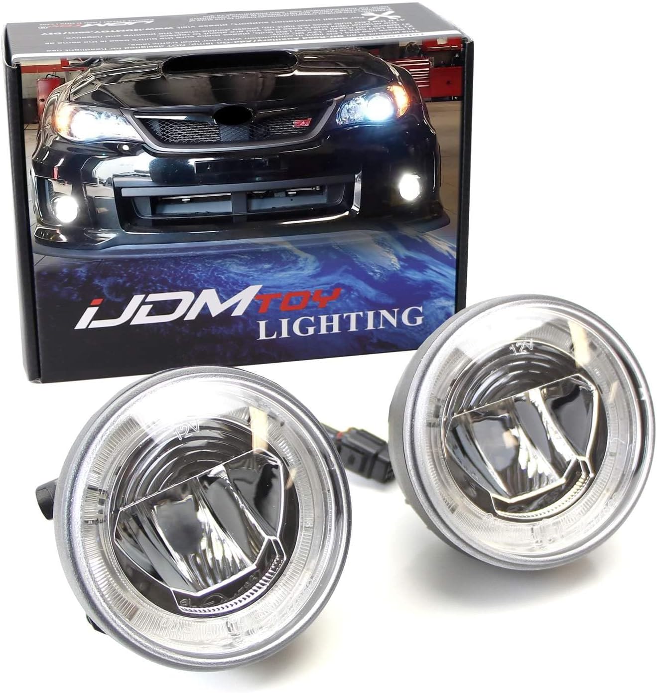 iJDMTOY Xenon White LED Daytime Running Light and Fog Lamps for 08-14 Subaru Impreza WRX/STi & 09-13 Forester - 6 XP-G LED Halo DRL & 1 10W XB-D LED Fog Light