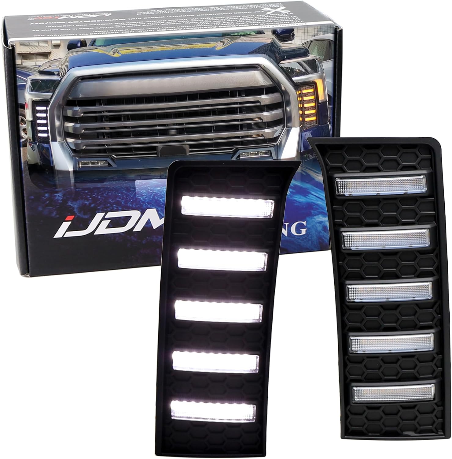 iJDMTOY Side Grille Replace Switchback LED Daytime Running Lights Compatible with 2022-Up Toyota Tundra, White LED DRL, Amber LED Sequential Turn Signal Feature