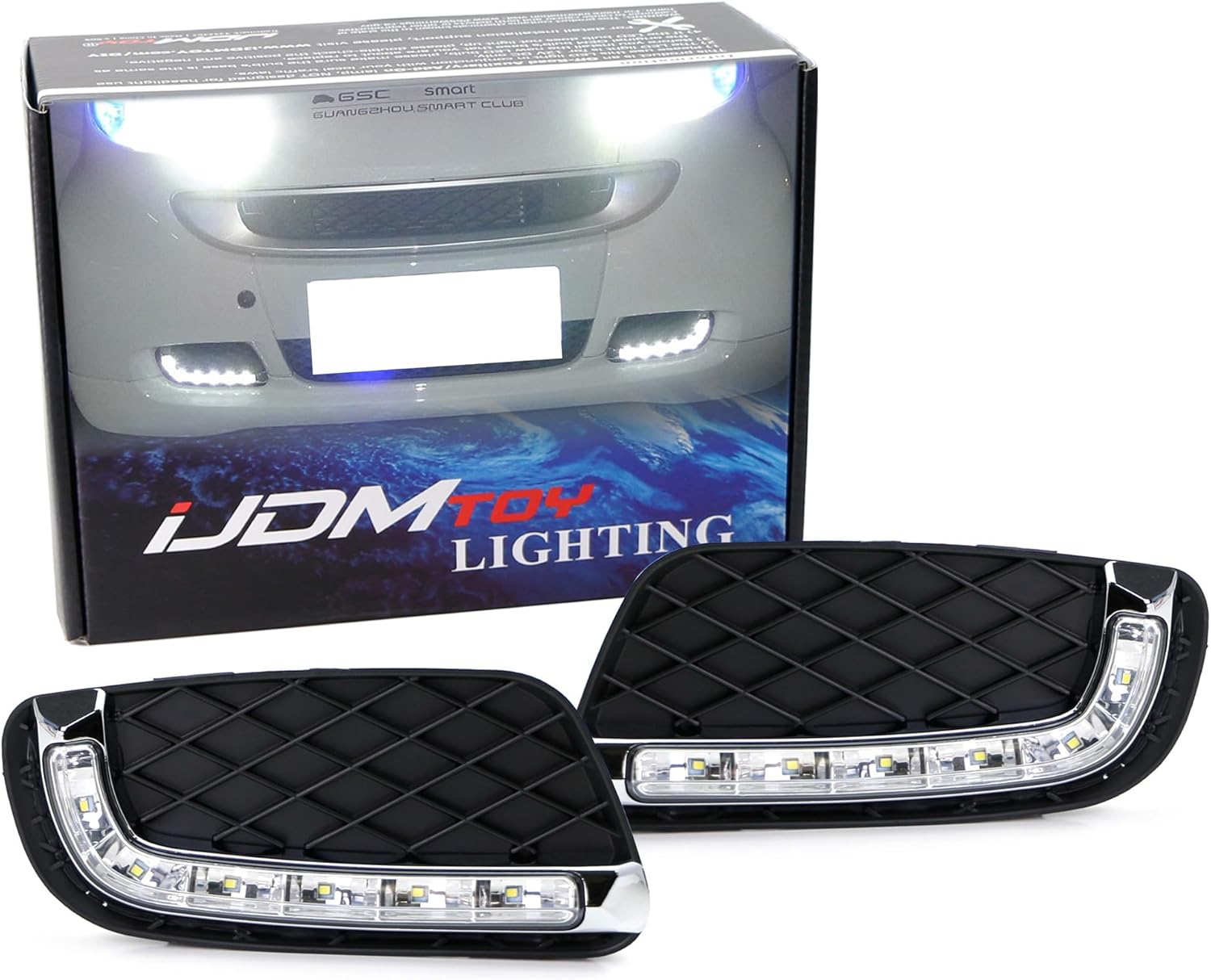iJDMTOY Brabus-Style Xenon White LED Daytime Running Light Kit Compatible With 2008-2012 W451 Smart Fortwo, Lower Bumper Grille Insert DRL Bezel Assy
